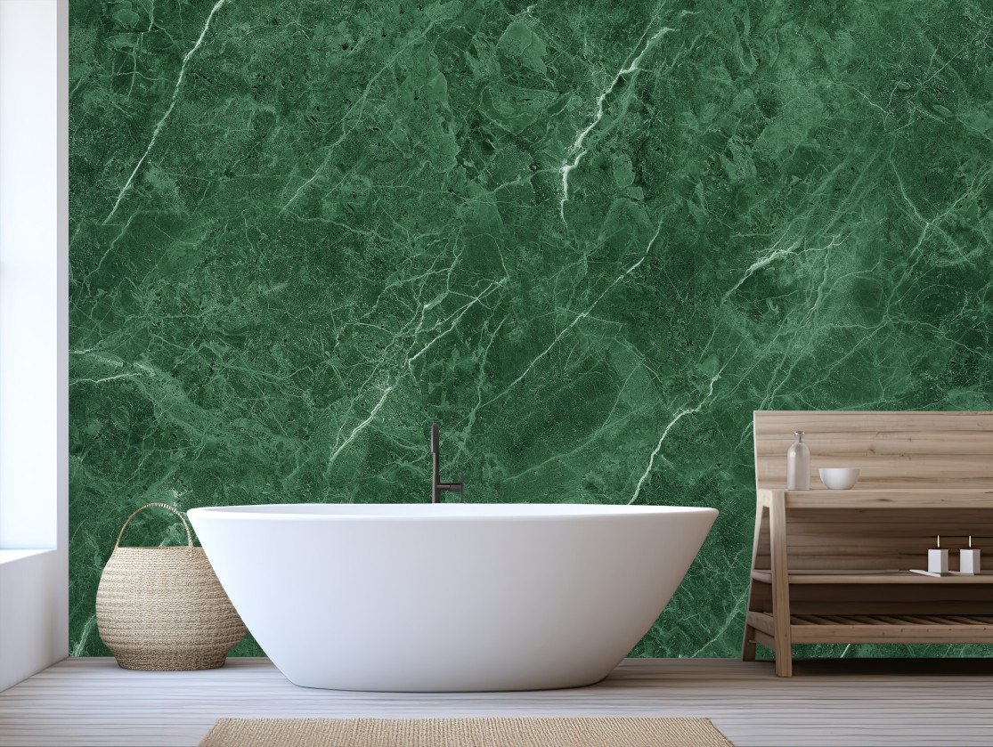 Dodaj ponadczasowej elegancji dzięki bogatej zielonej teksturze marmuru z naturalnymi żyłkami i głębią.