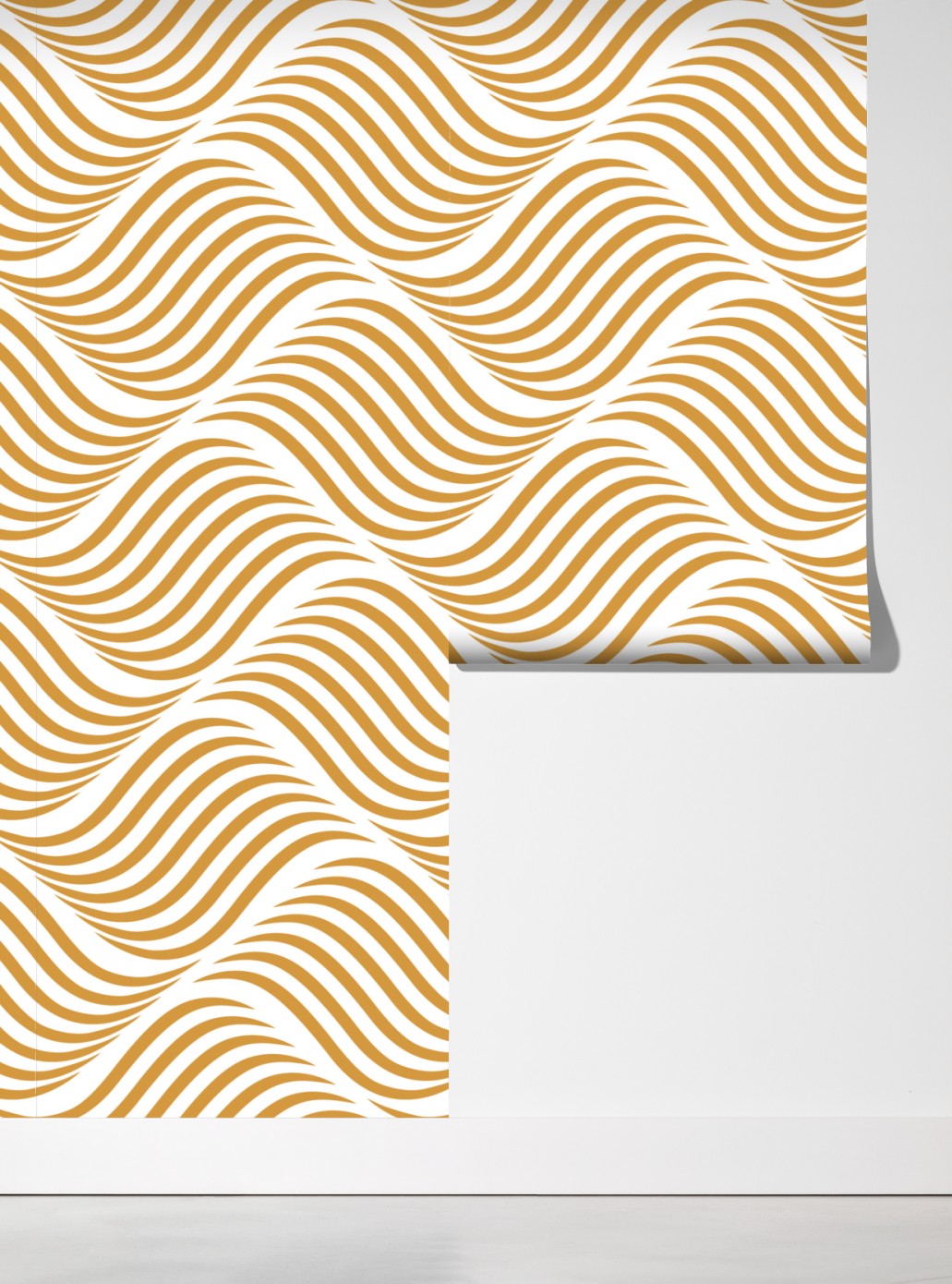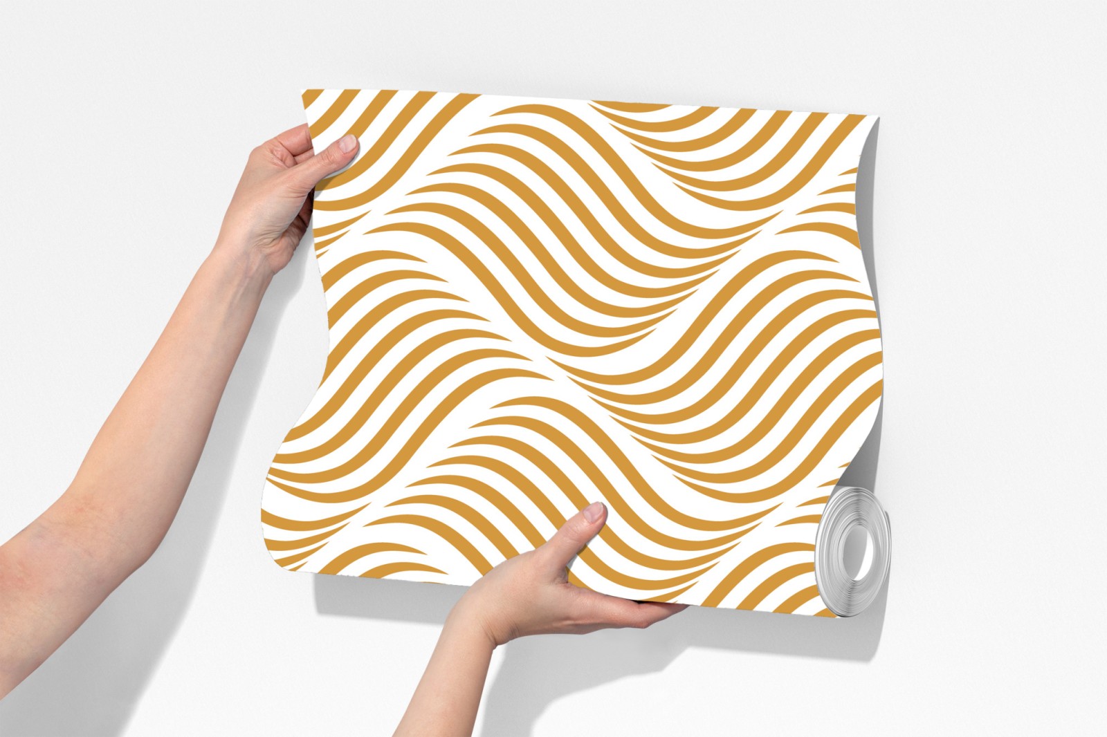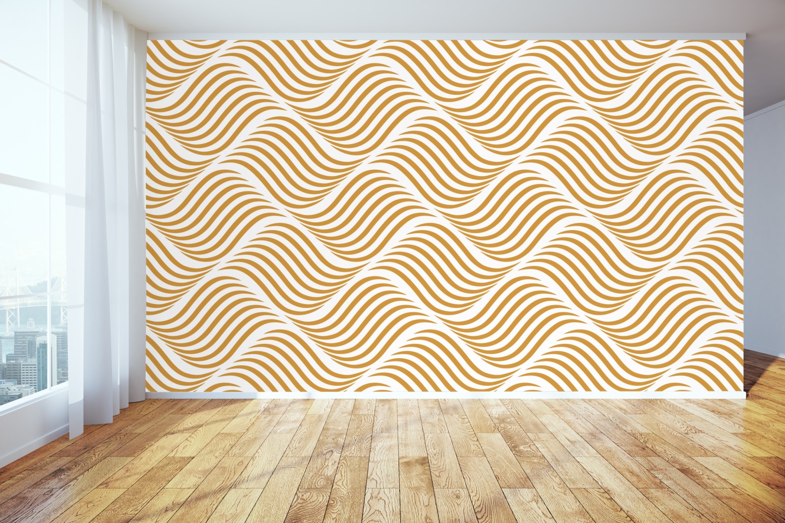 Dodaj elegancki ruch do wnętrza dzięki powtarzalnemu złotemu wzorowi falowemu, idealnemu na ściany akcentowe lub oprawę.
