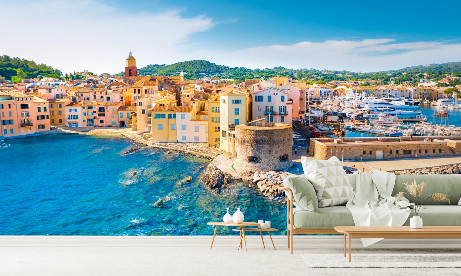 Wprowadź nadmorski urok do swojego wnętrza dzięki żywej fotografii słonecznego portu i krystalicznie błękitnej wody.