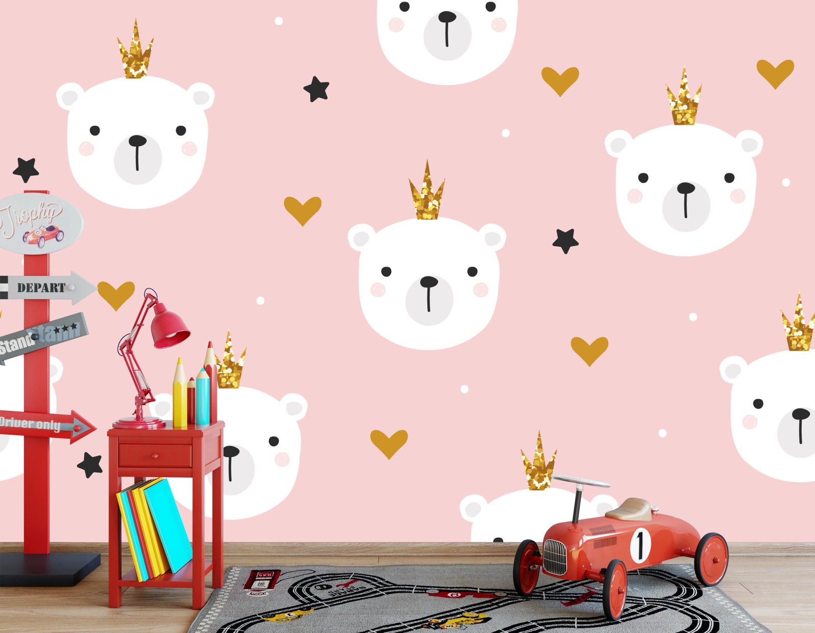 Fototapeta Słodki wzór z niedźwiedziami w koronach do pokoju dziecka
