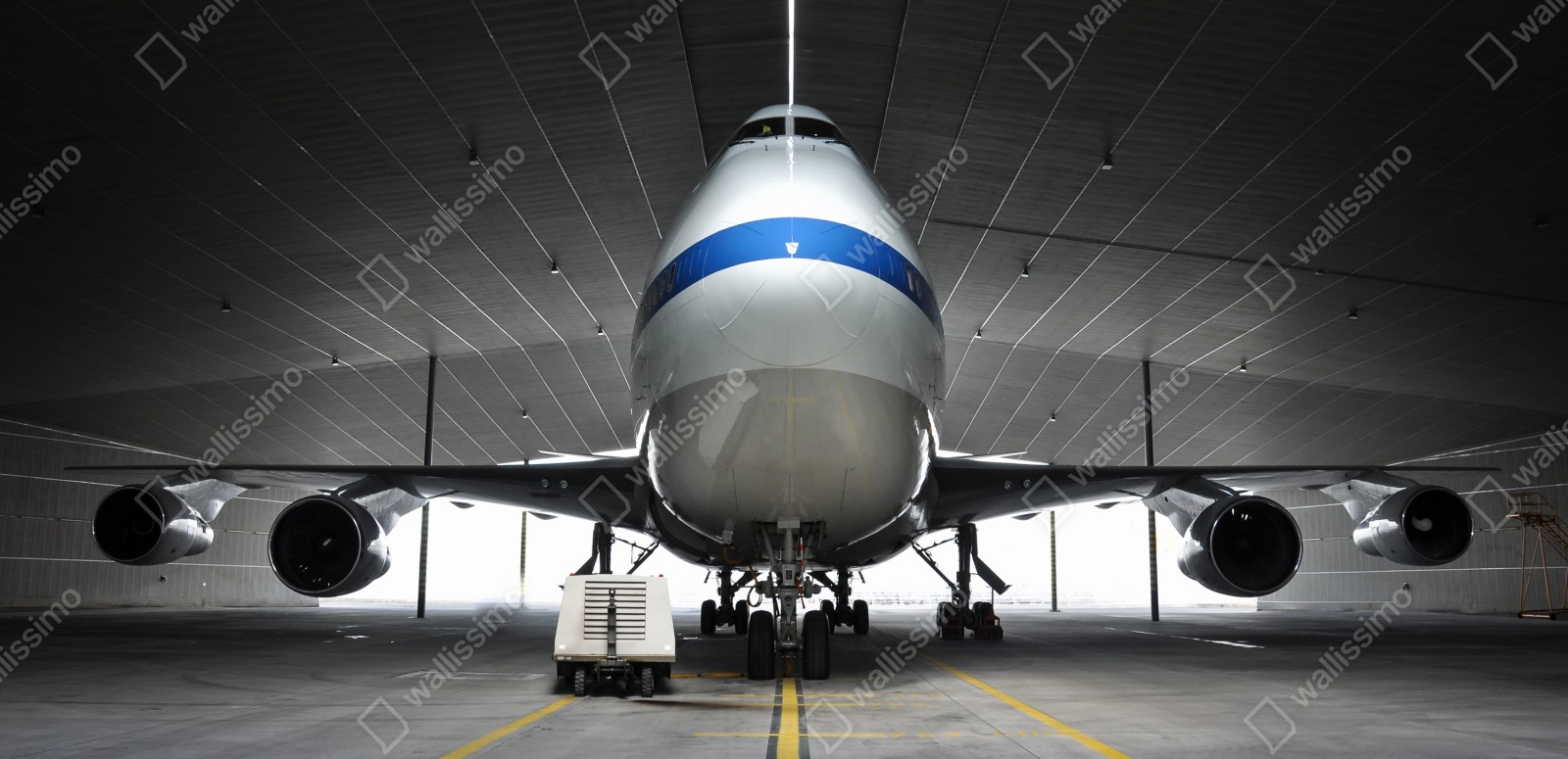 Fototapeta Samolot towarowy w hangarze - widok z przodu