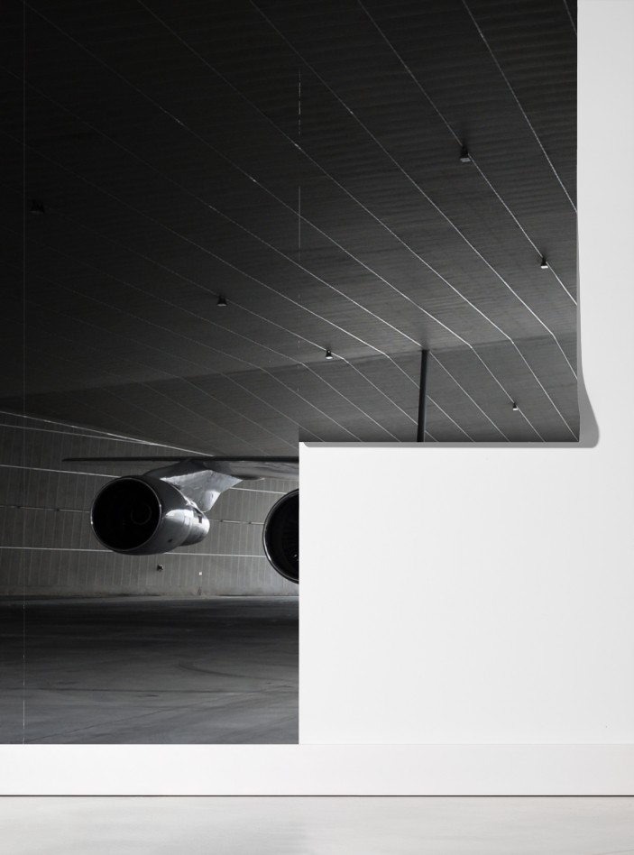 Imponujące zdjęcie samolotu towarowego z frontu w przestronnym hangarze, idealne do biura lub loftu o przemysłowym charakterze.