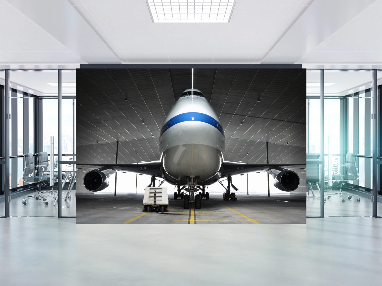 Fototapeta Samolot towarowy w hangarze - widok z przodu