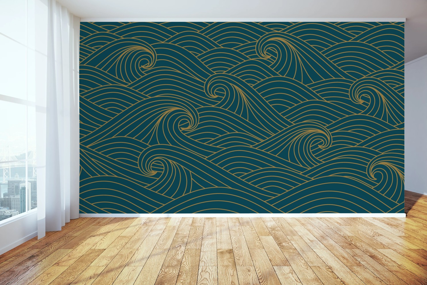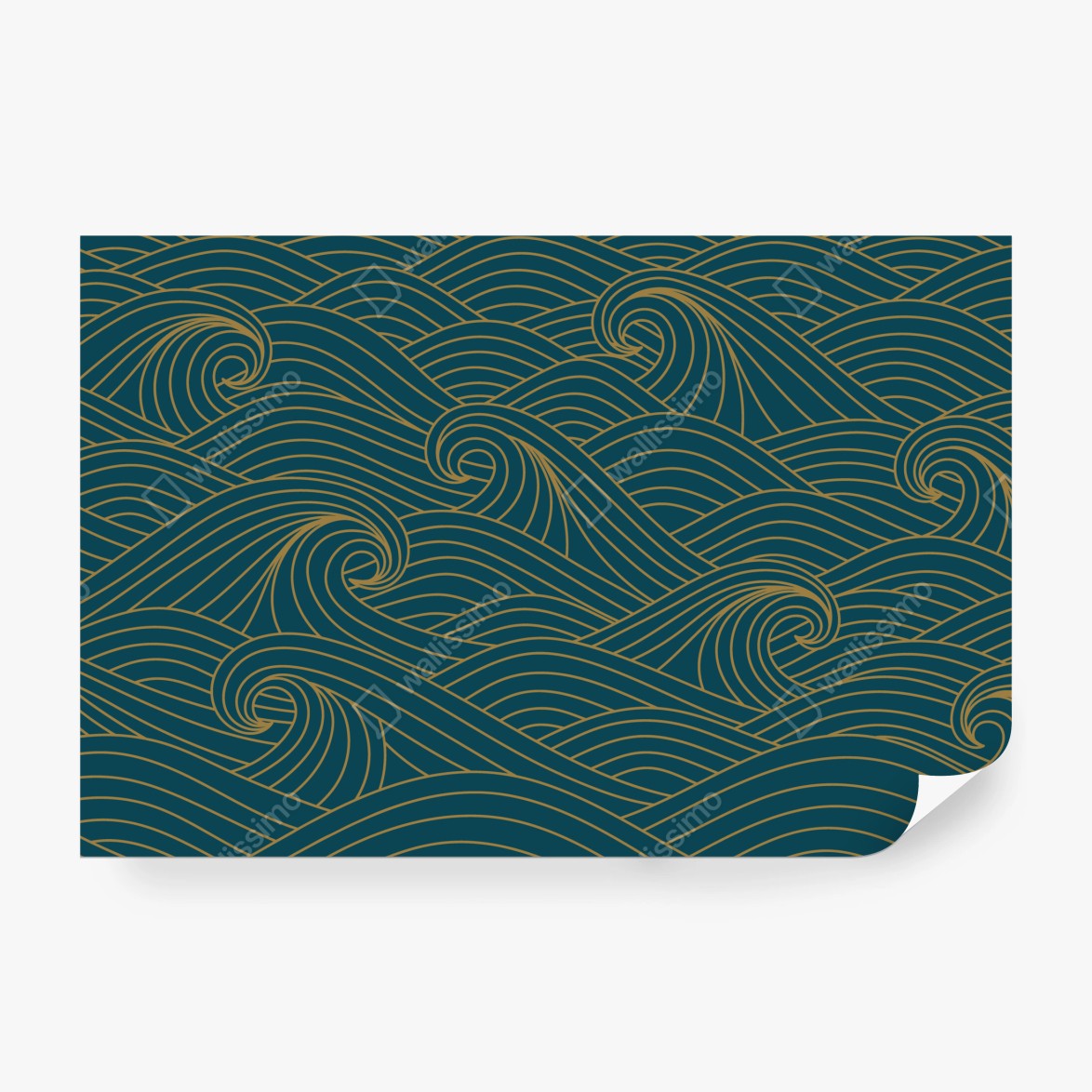 Fototapeta Turkusowy wzór fal ze złotymi liniami