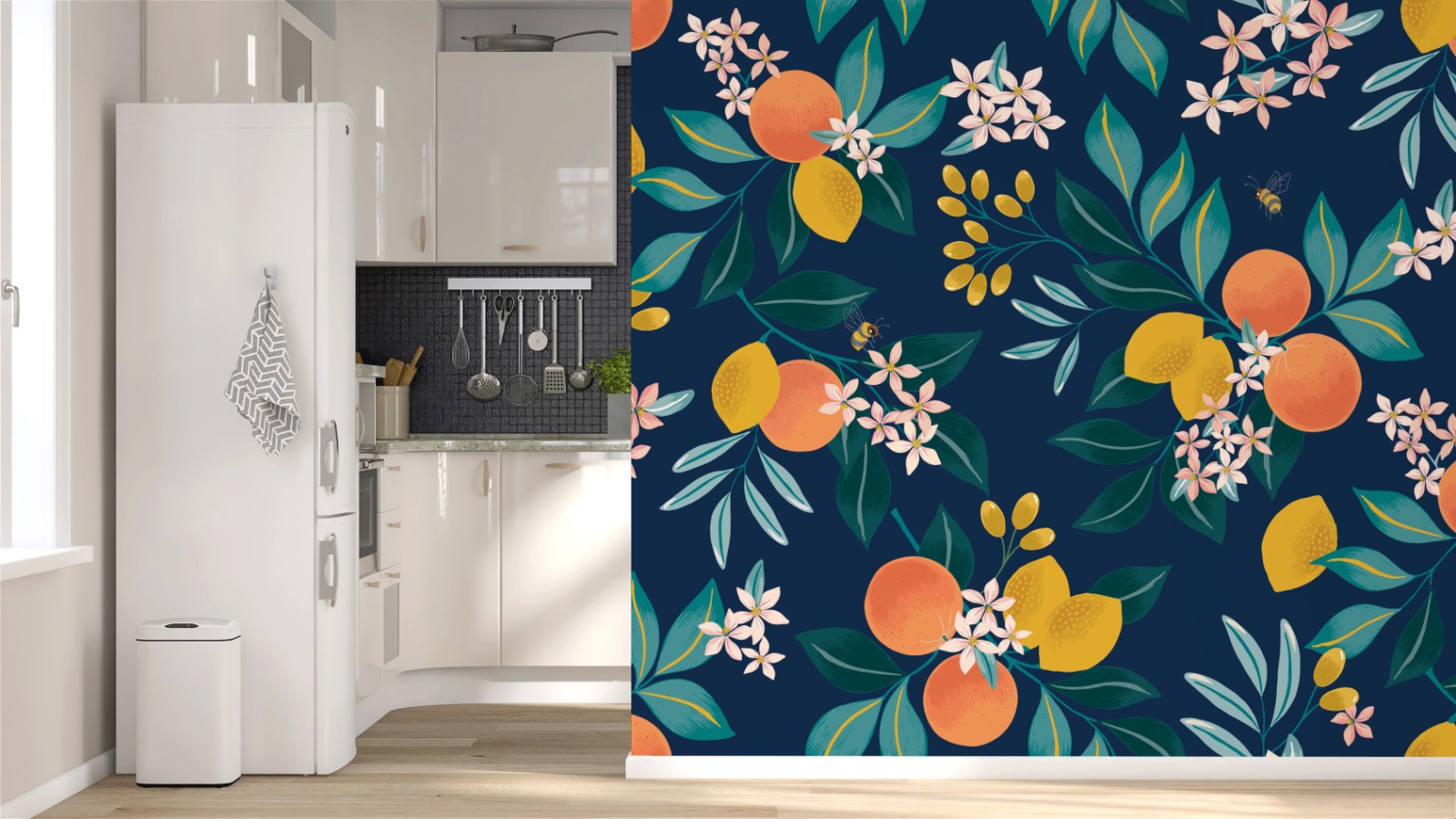 Fototapeta Botaniczny wzór z kwiatami cytrusów na granatowym tle