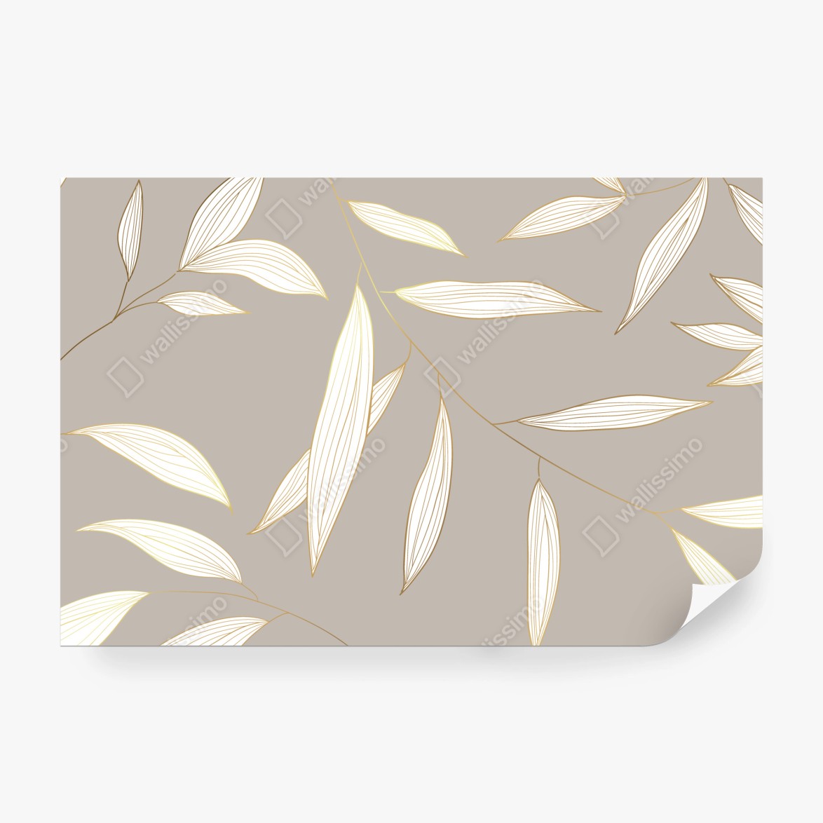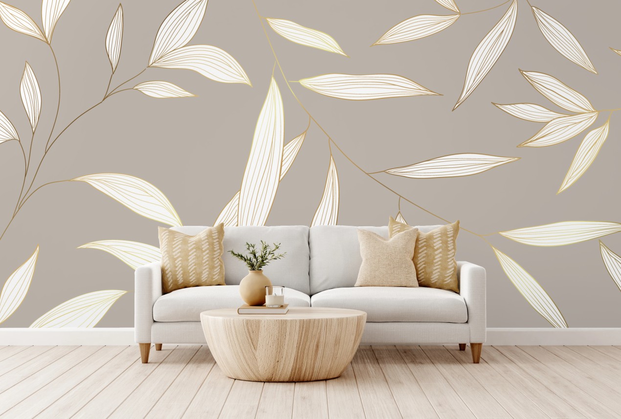 Fototapeta Delikatne liście z złotym obrysem na beżowym tle