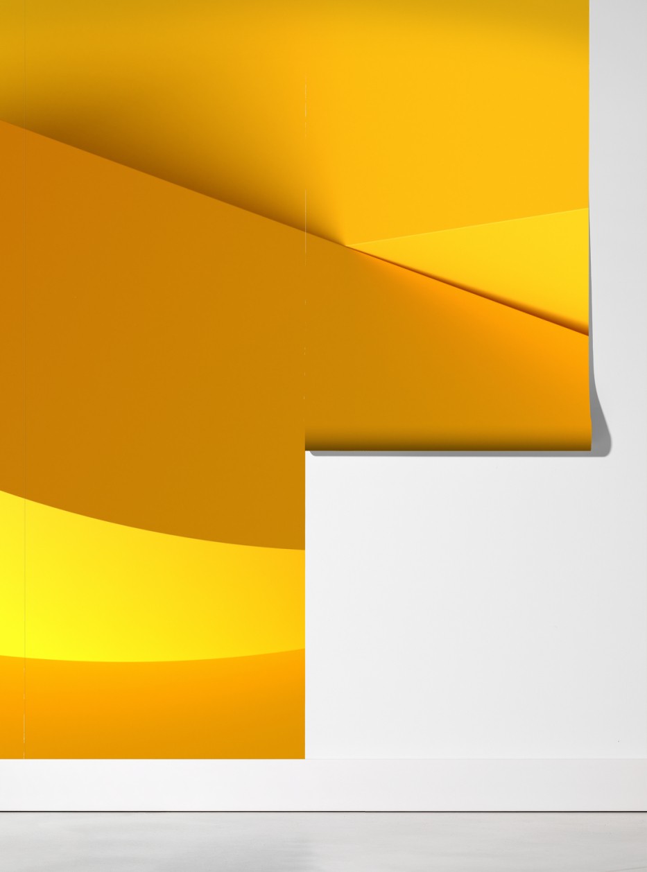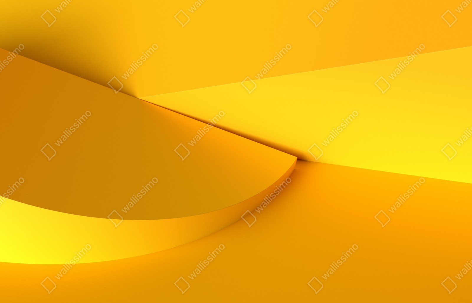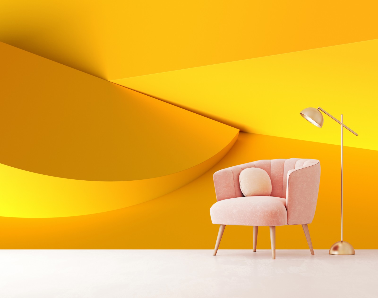 Intensywna żółta kompozycja geometryczna dodaje wnętrzu nowoczesnego, minimalistycznego charakteru i głębi dzięki czystym formom 3D.