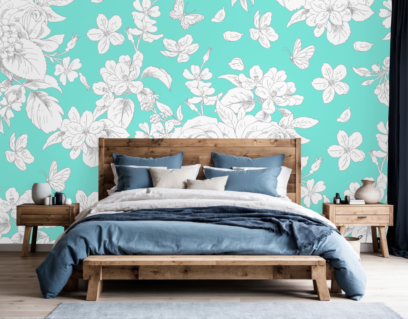 Fototapeta Turkusowy wzór botaniczny z kwiatami