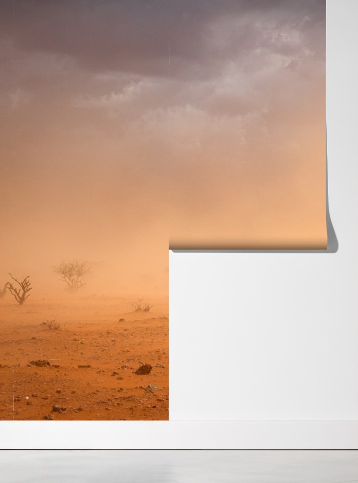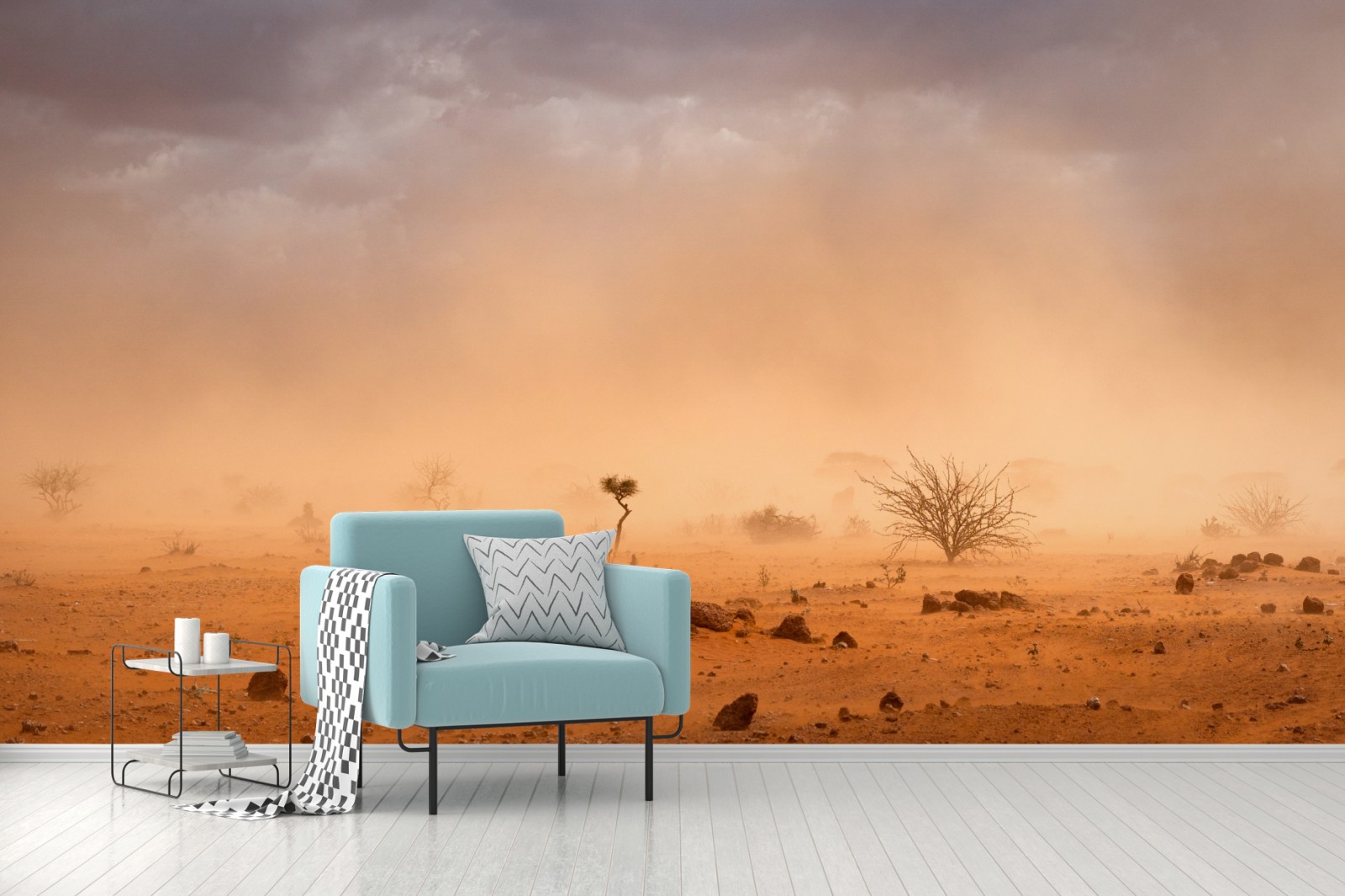 Poczuj surowe piękno pustyni podczas burzy piaskowej nad Dollo Ado w Etiopii, uchwycone w ciepłych, stonowanych barwach, które dodadzą atmosfery twoim ścianom.
