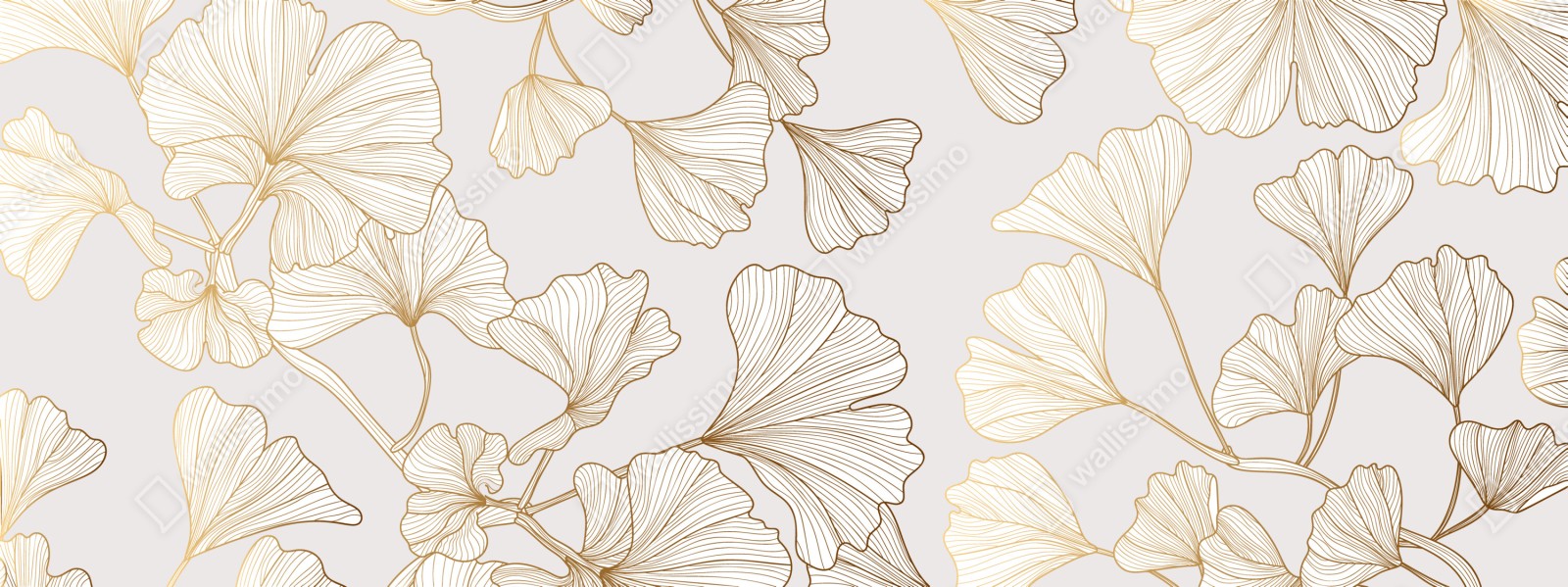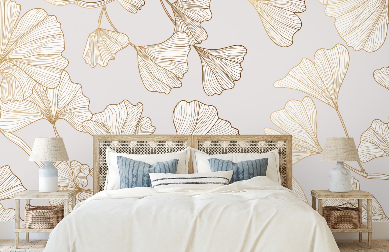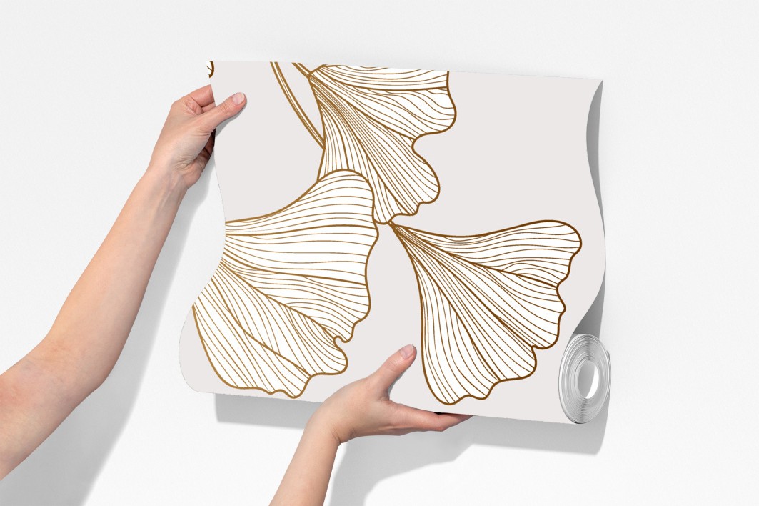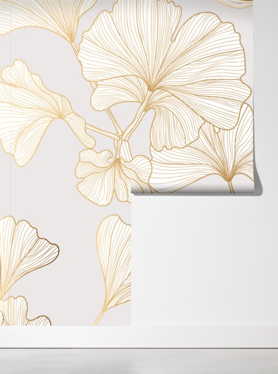 Dodaj subtelny urok liści miłorzębu w ciepłych beżowo-złotych tonach, tworząc elegancką i spokojną atmosferę.