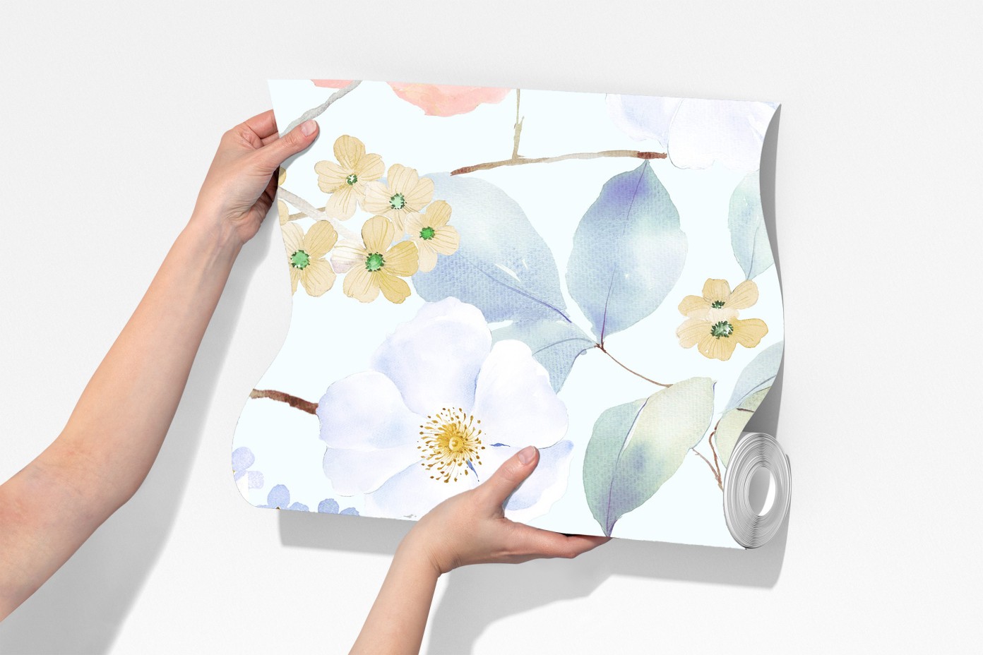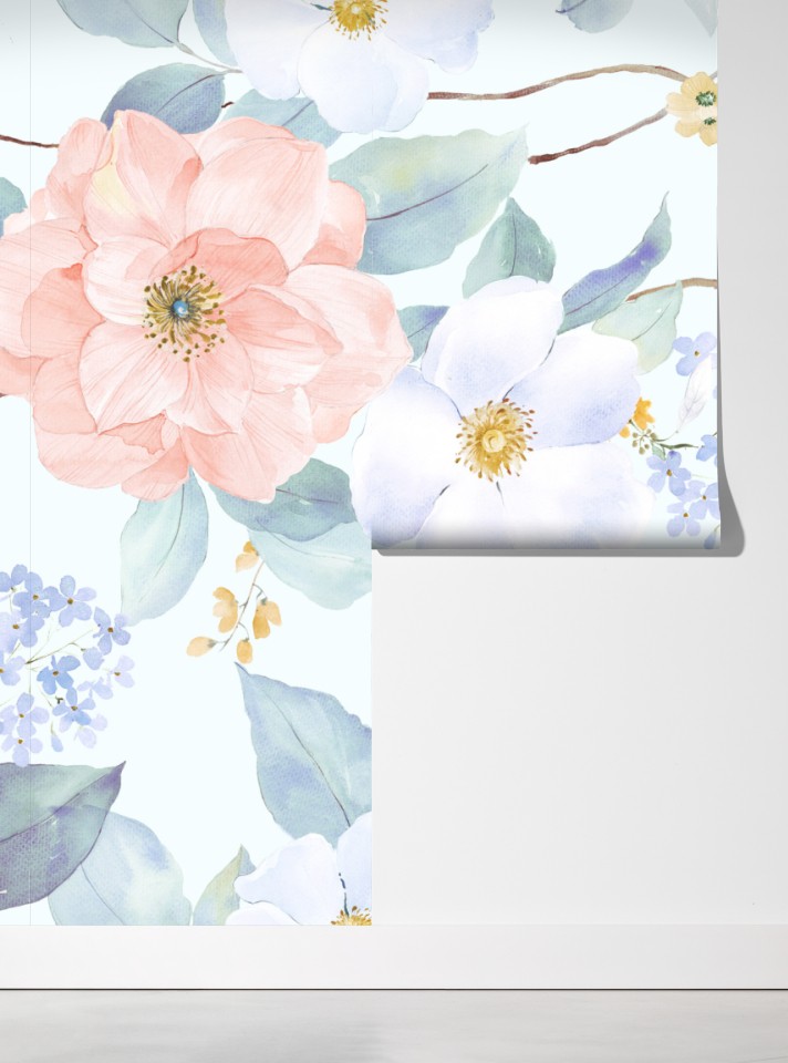 Dodaj delikatnej kwiatowej elegancji do wnętrza dzięki pastelowym akwarelowym kwiatom, które wprowadzają spokojną atmosferę.