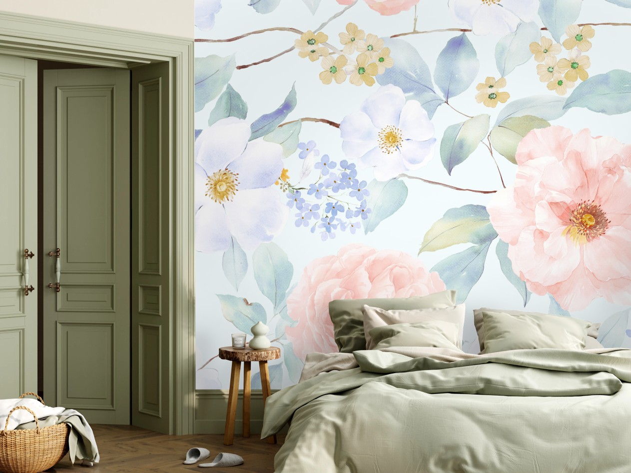 Fototapeta Delikatne pastelowe kwiaty w akwareli