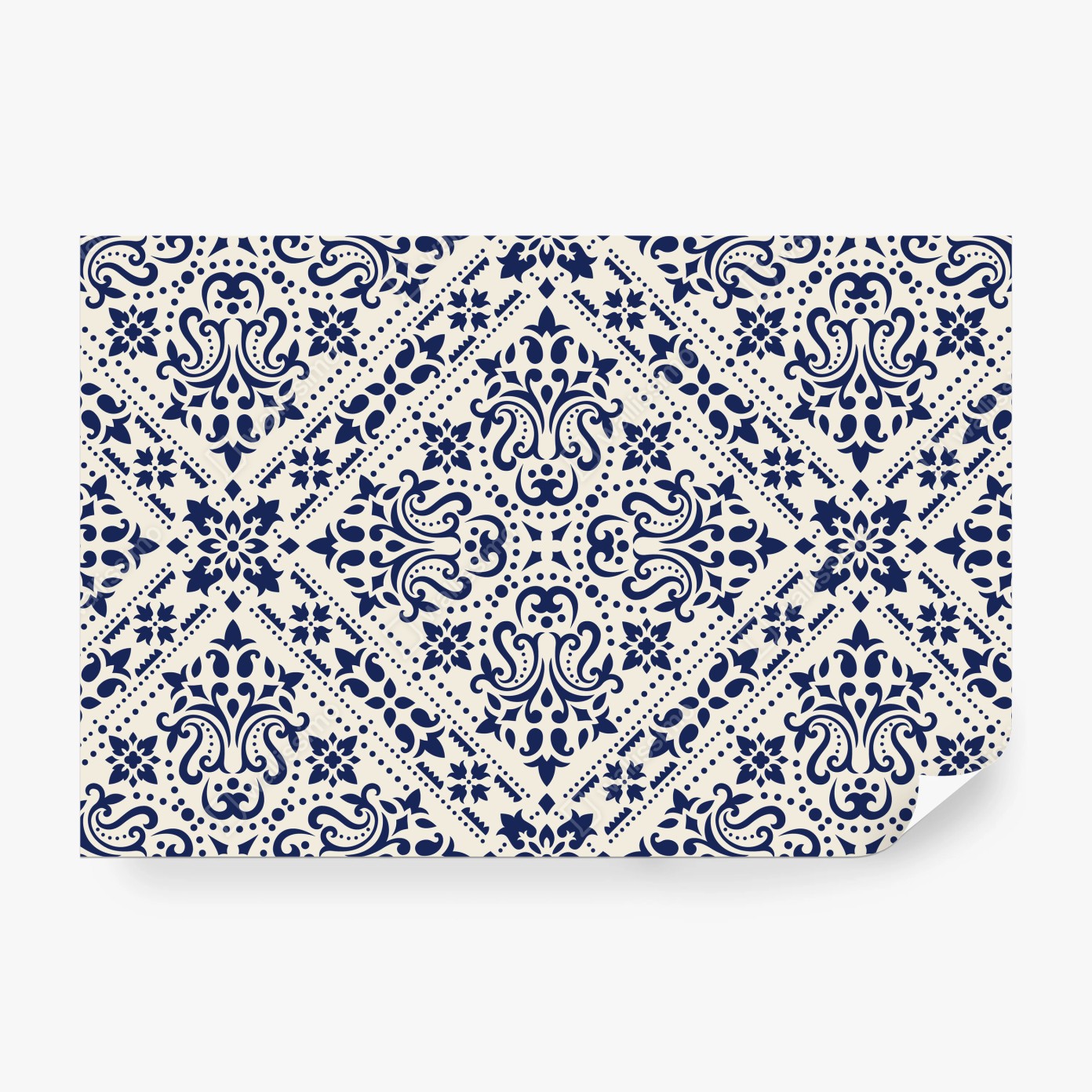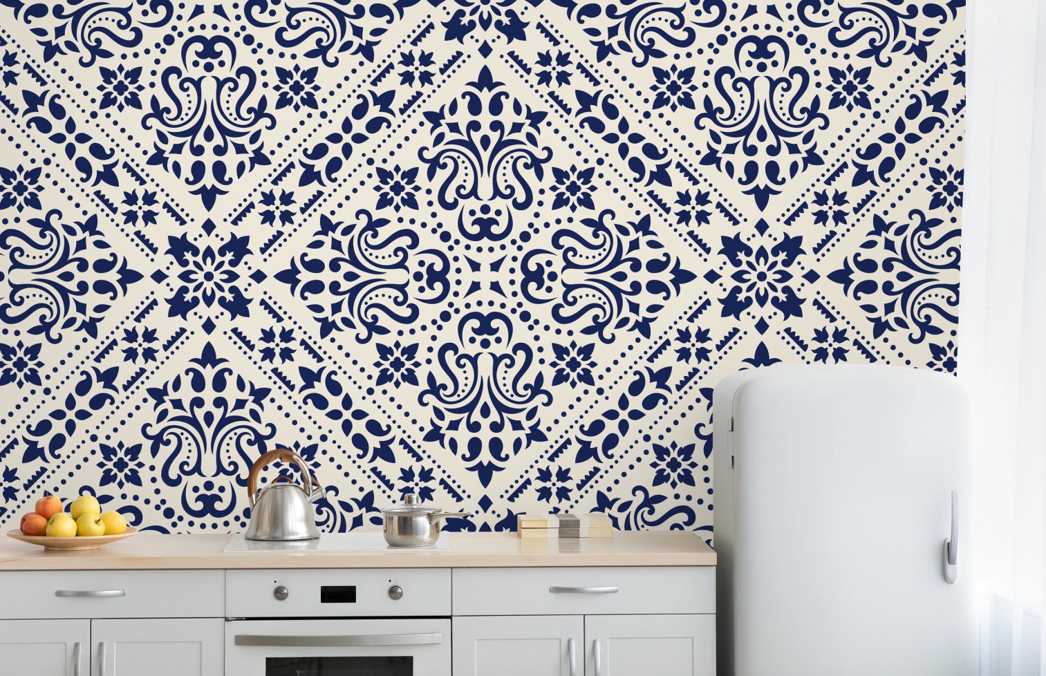 Fototapeta Granatowy wzór damaskowy na płytkach