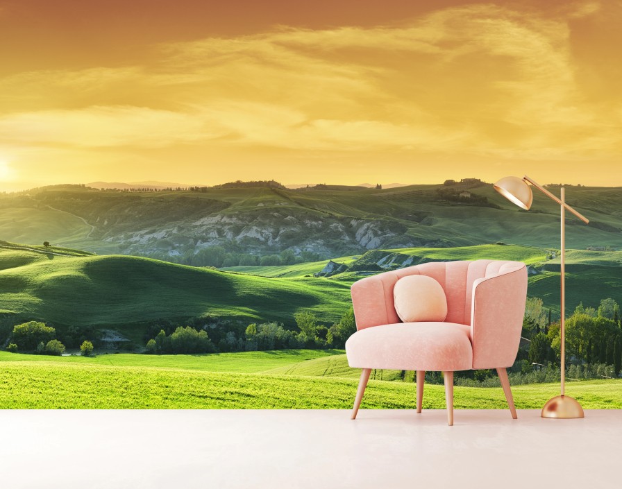 Fototapeta Toskańskie pagórki o zachodzie słońca