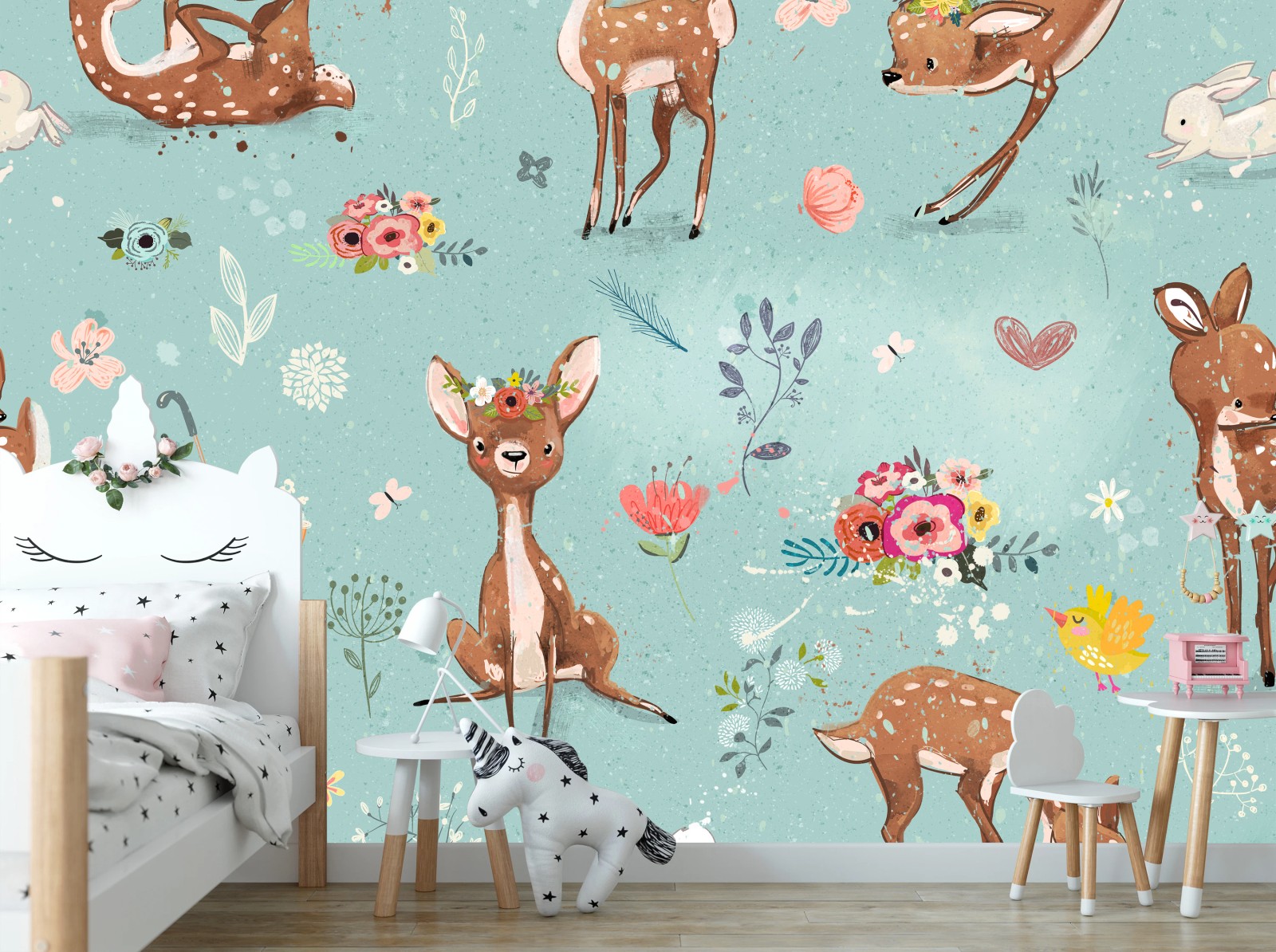 Fototapeta Pastelowy wzór leśnych sarenek i królików