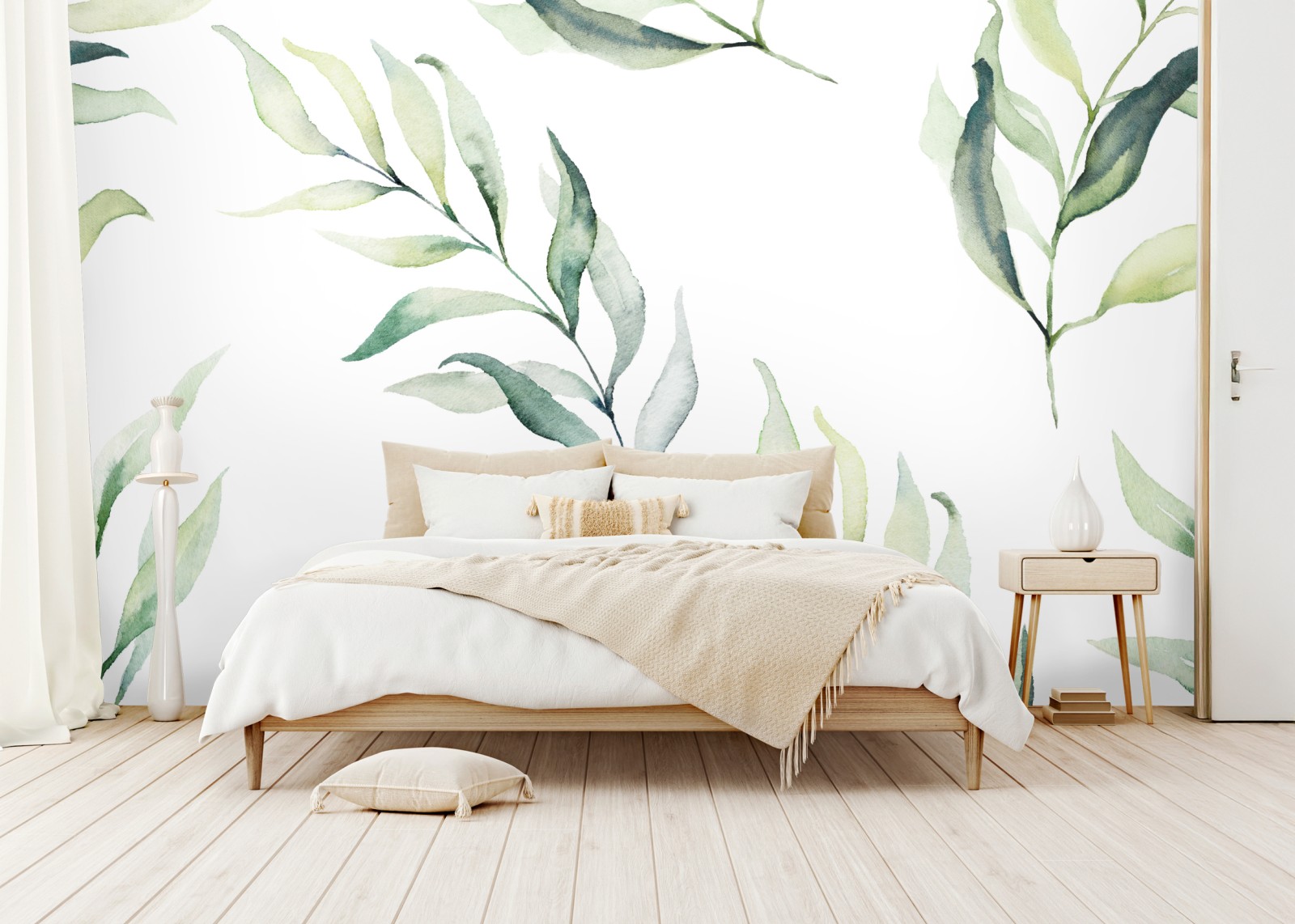 Dodaj do wnętrza spokojny, naturalny akcent dzięki delikatnemu akwarelowemu wzorowi z zielonymi liśćmi.