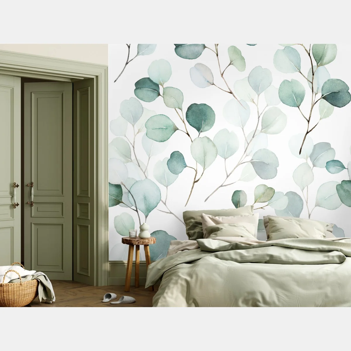 - botaniczny, wzór bezszwowy, minimalistyczny, skandynawski, liście, przyroda, akwarela, eukaliptus, plakat ścienny, delikatne odcienie
