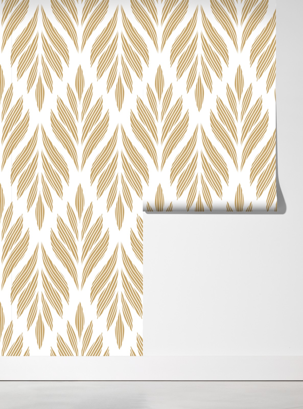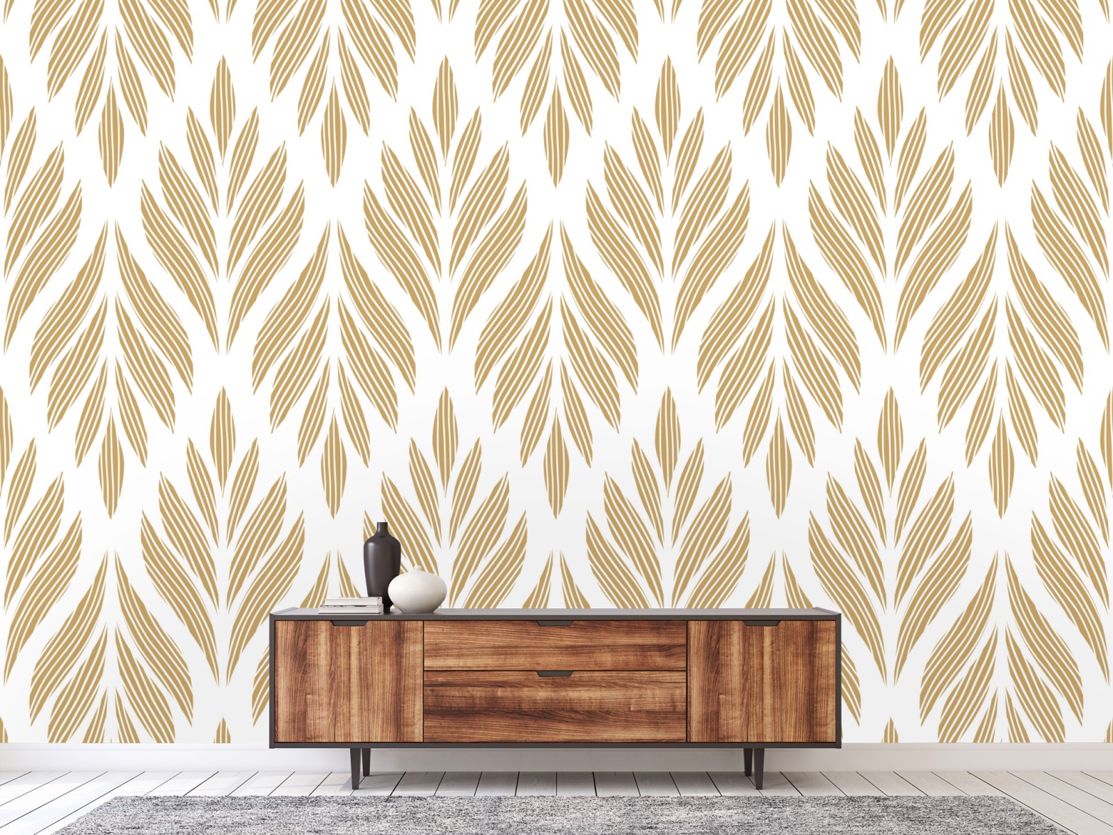 Wnieś do wnętrza luksusowy złoty wzór liści, który doda ciepła i elegancji każdemu pomieszczeniu.
