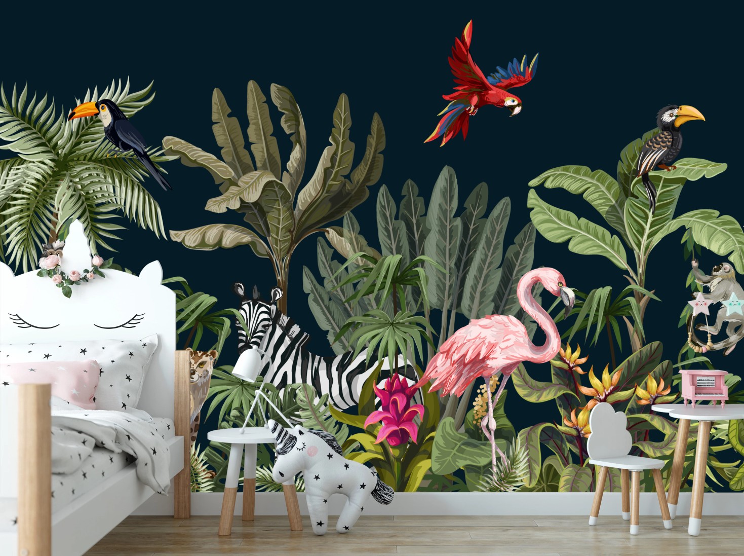 Fototapeta Tropikalna scena dżungli z dziką fauną