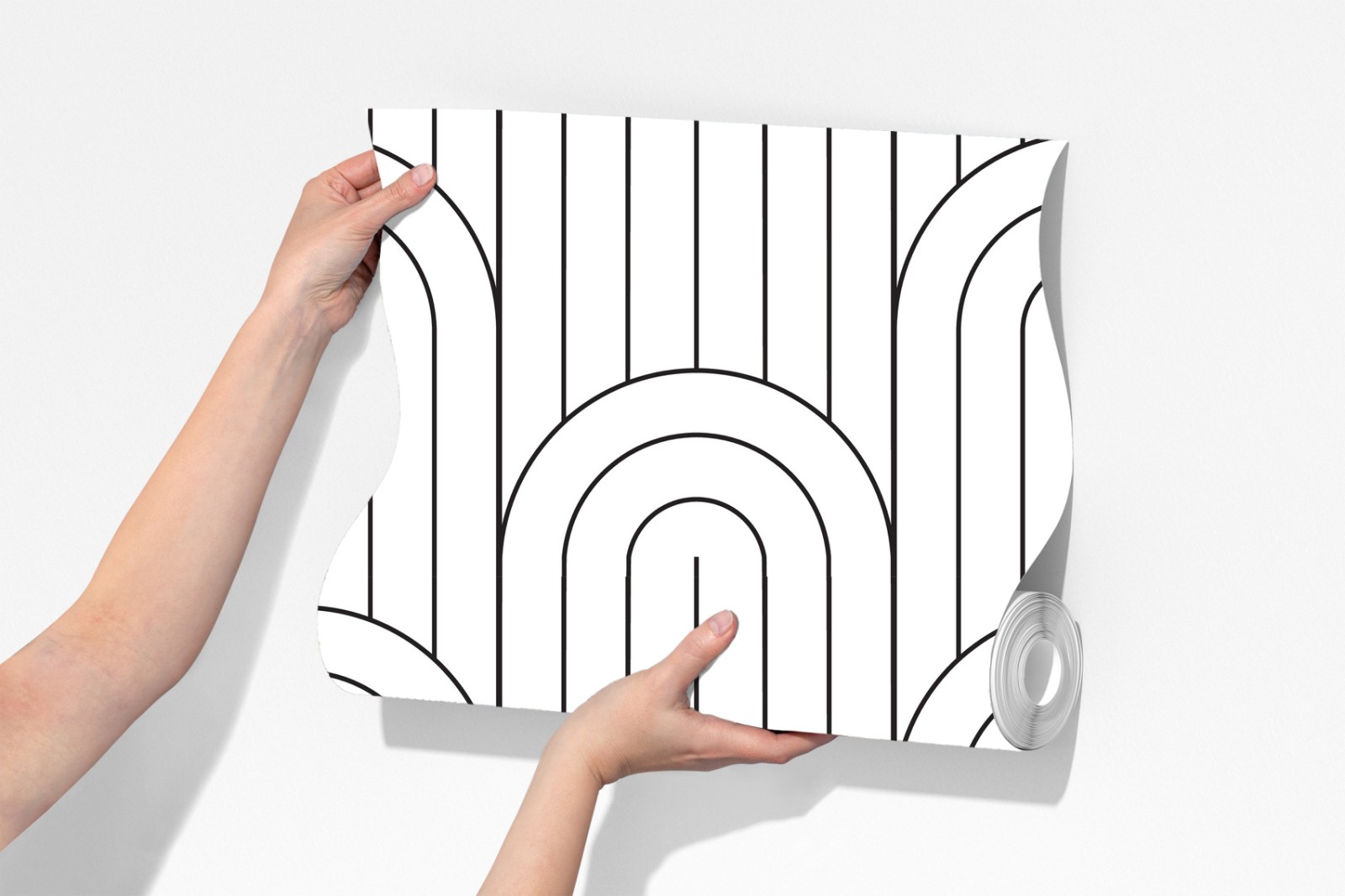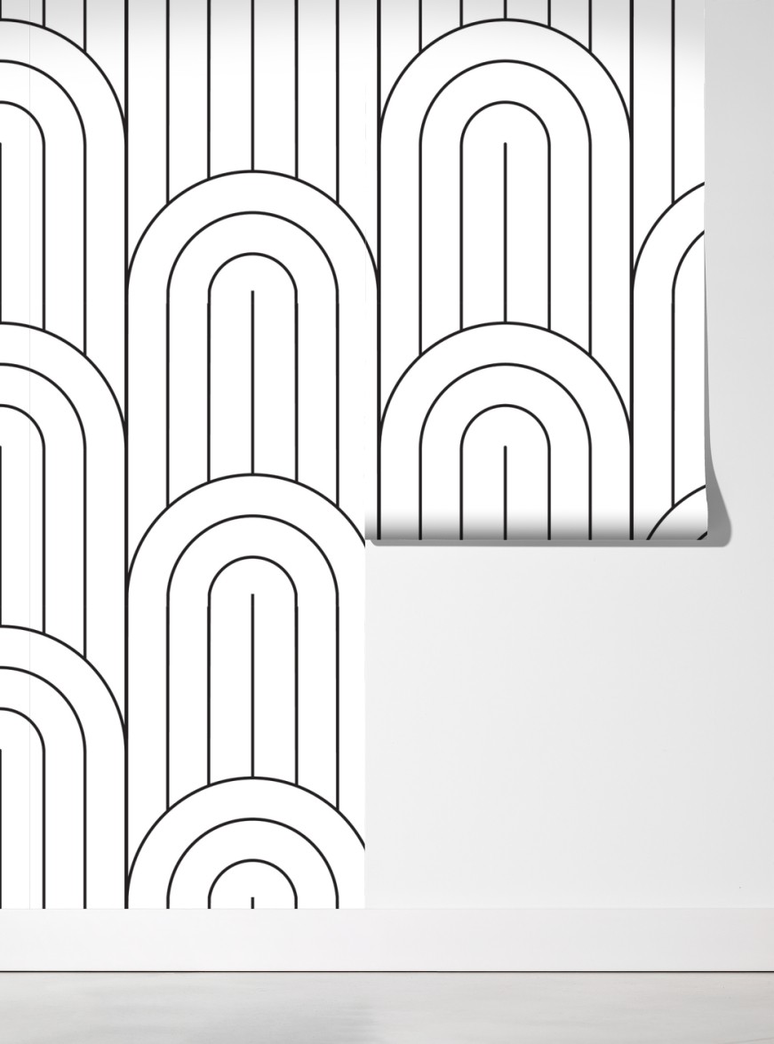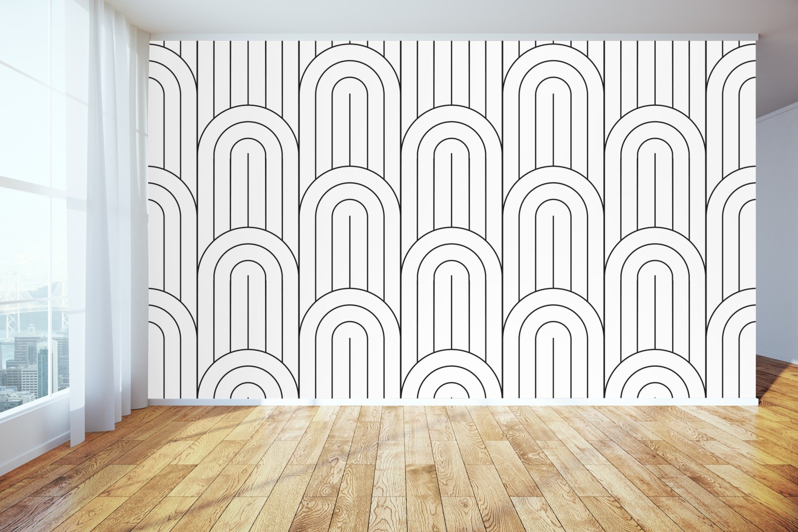 Dodaj minimalistyczny, monochromatyczny wzór łuków, który wniesie nowoczesną, geometryczną elegancję do każdego wnętrza.