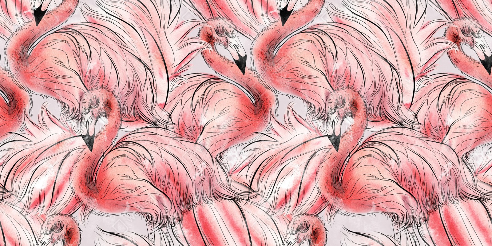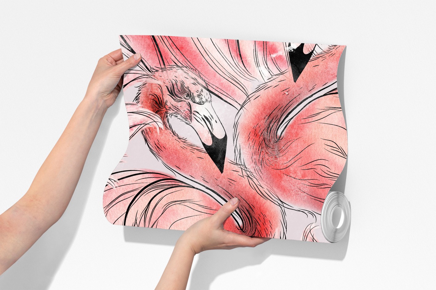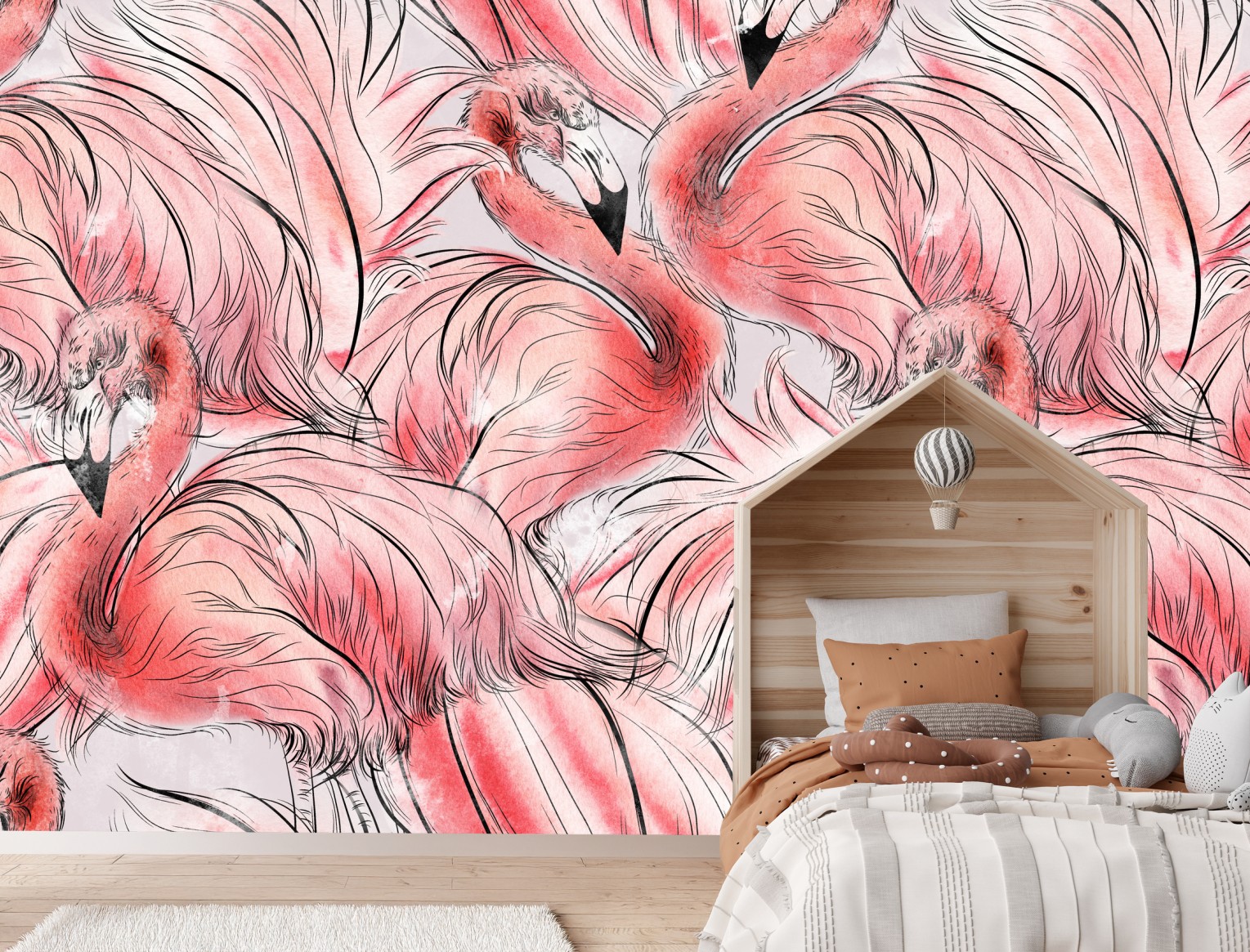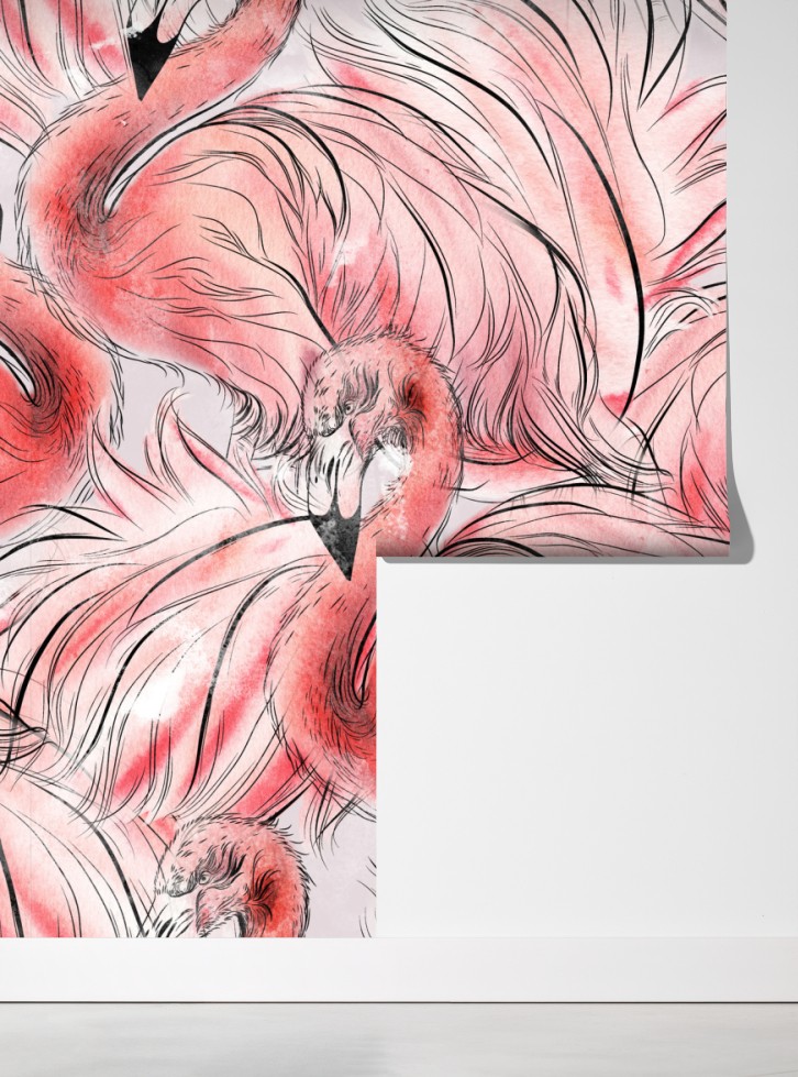 Dodaj tropikalnego uroku do wnętrza dzięki akwarelowemu wzorowi z flamingami; delikatne różowe tonacje i finezyjne pióra tworzą radosną i elegancką atmosferę.