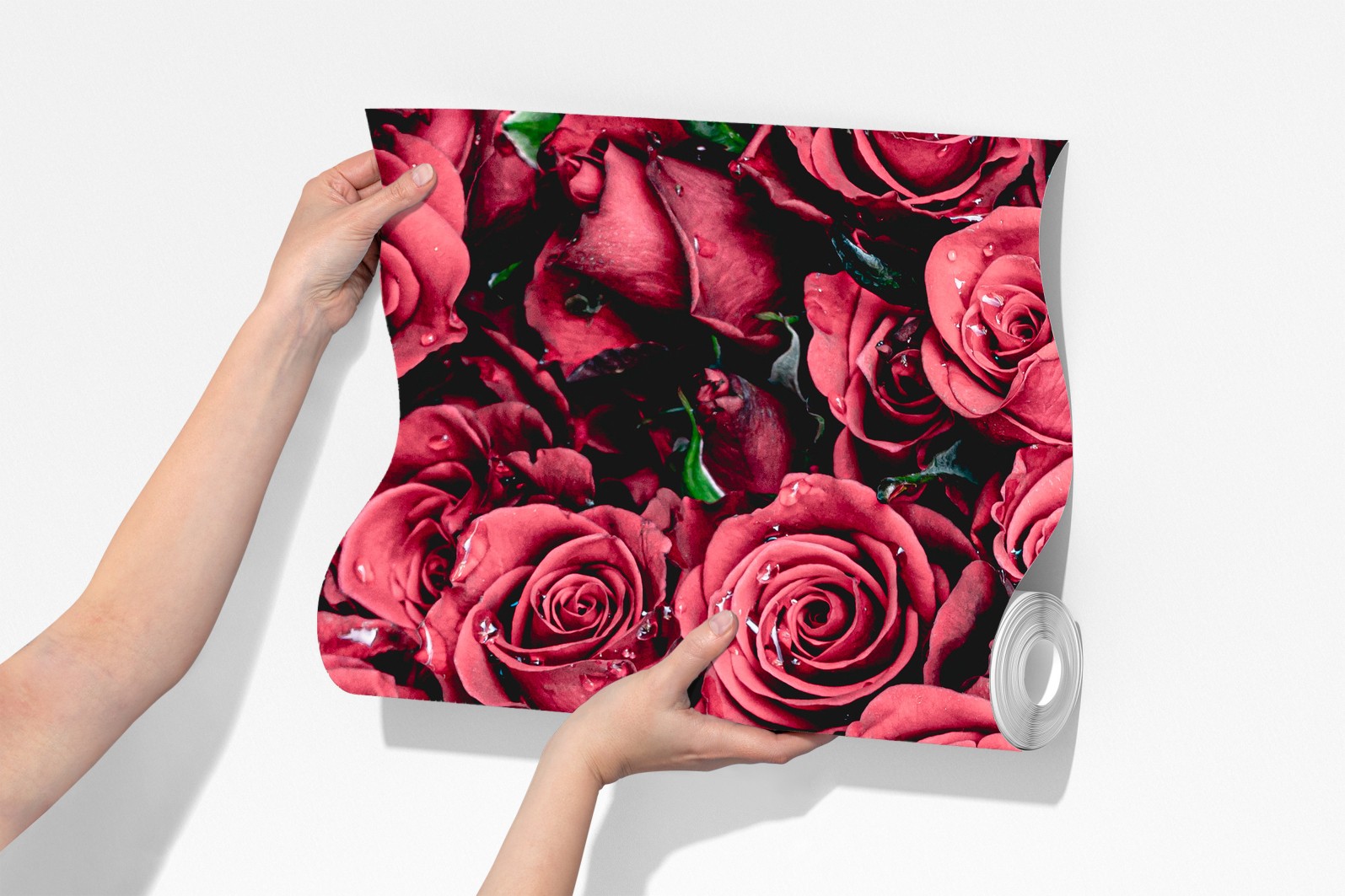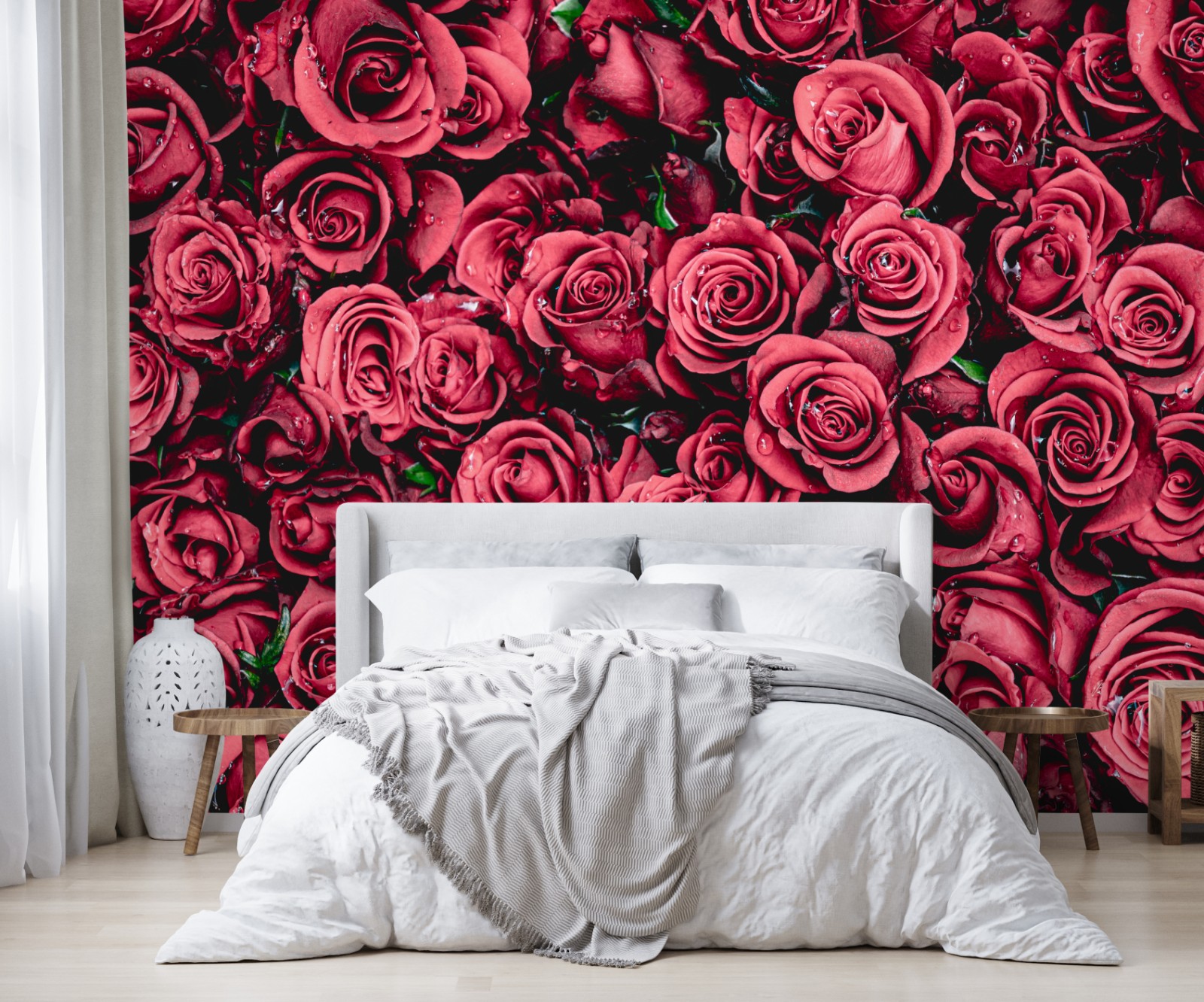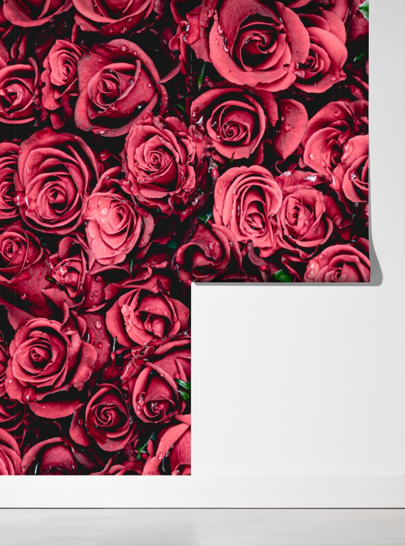 Przemień wnętrze dzięki gęstemu zbliżeniu czerwonych róż, które dodaje romantycznego koloru i naturalnej faktury.