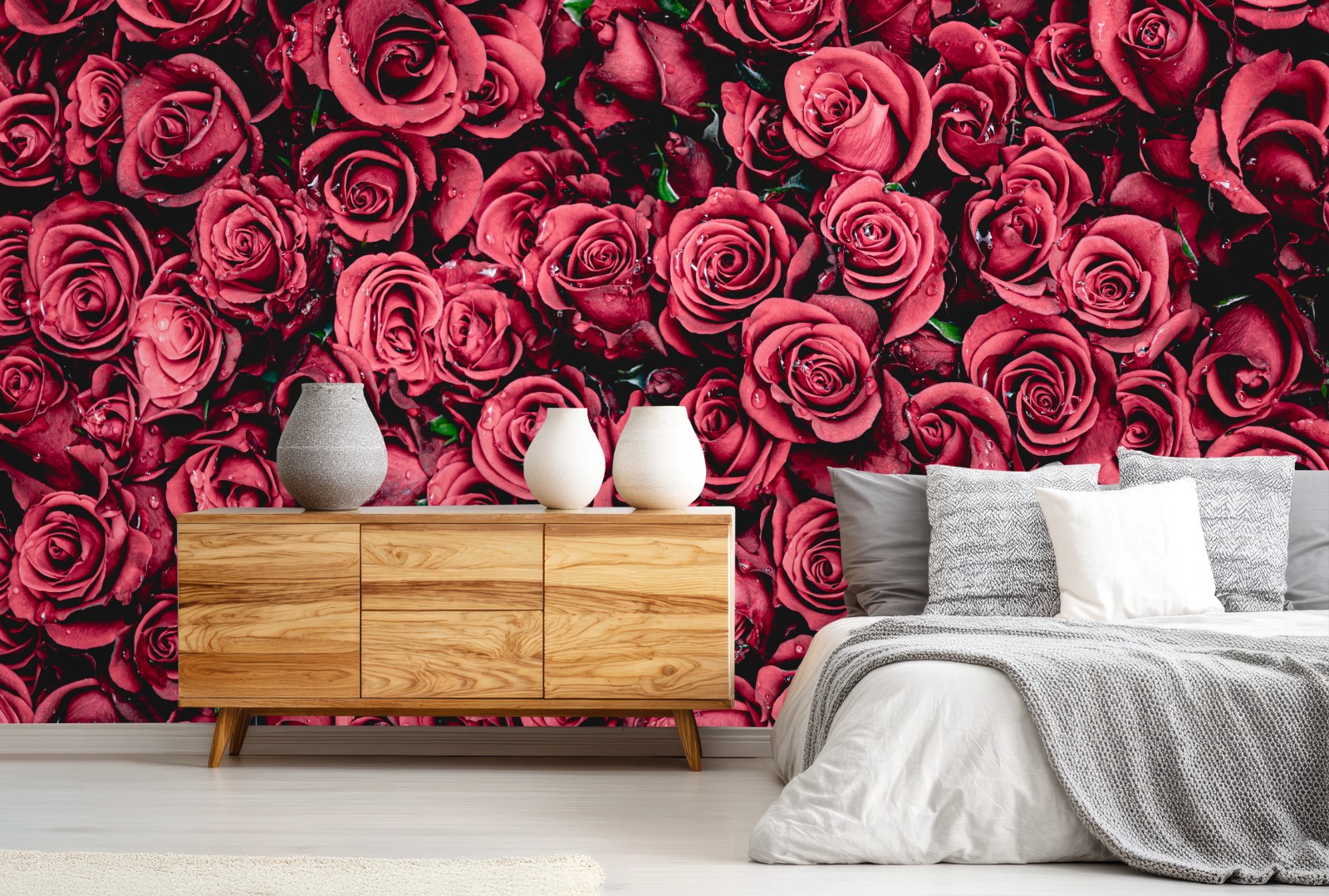 Fototapeta Gęste czerwone róże dekoracja ścienna