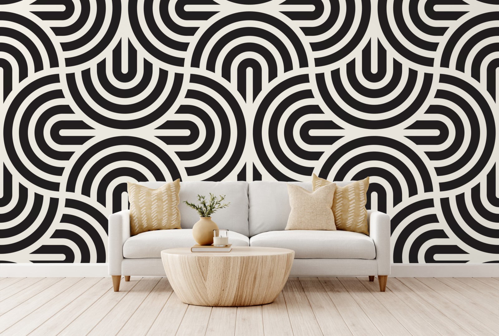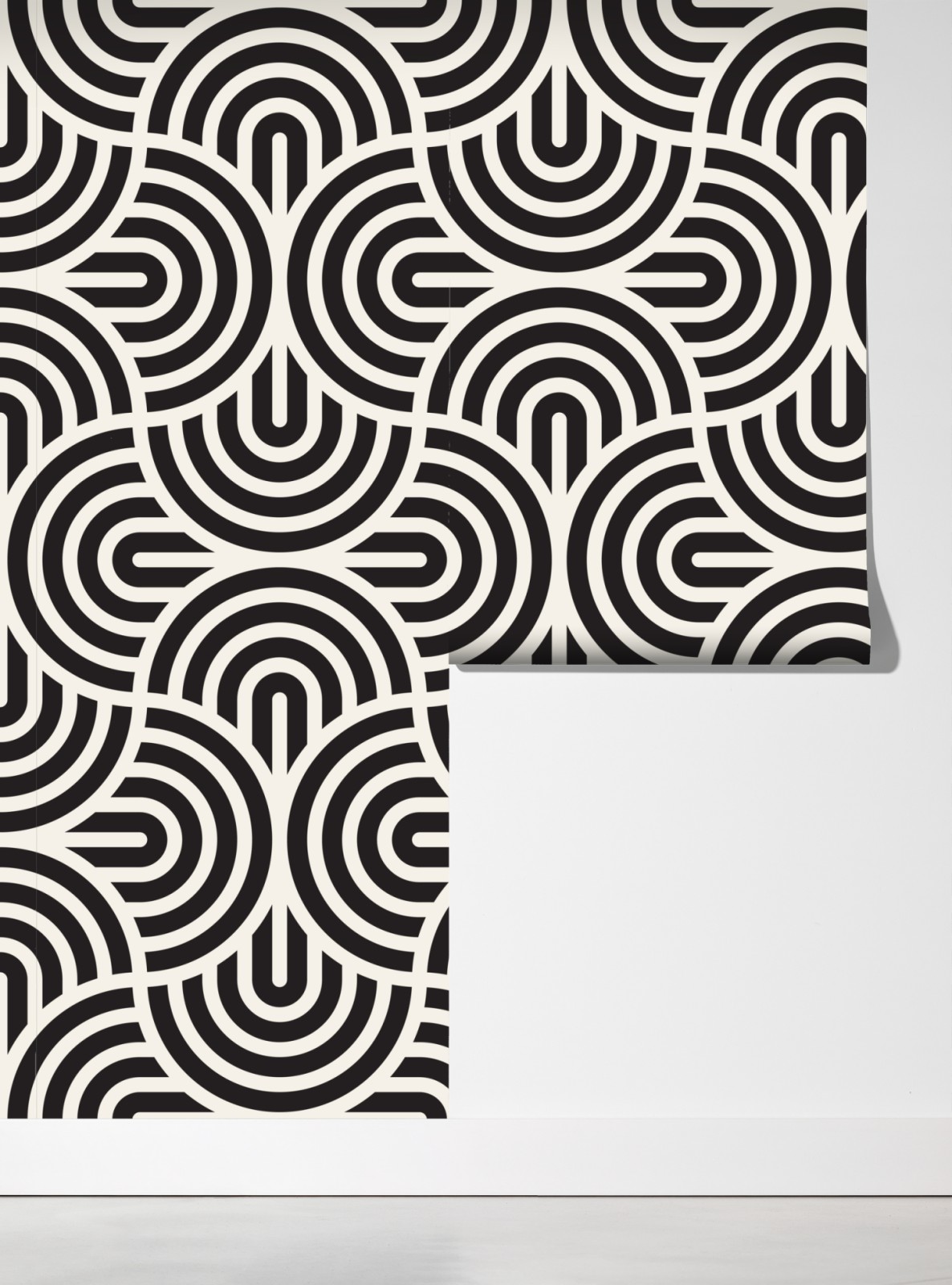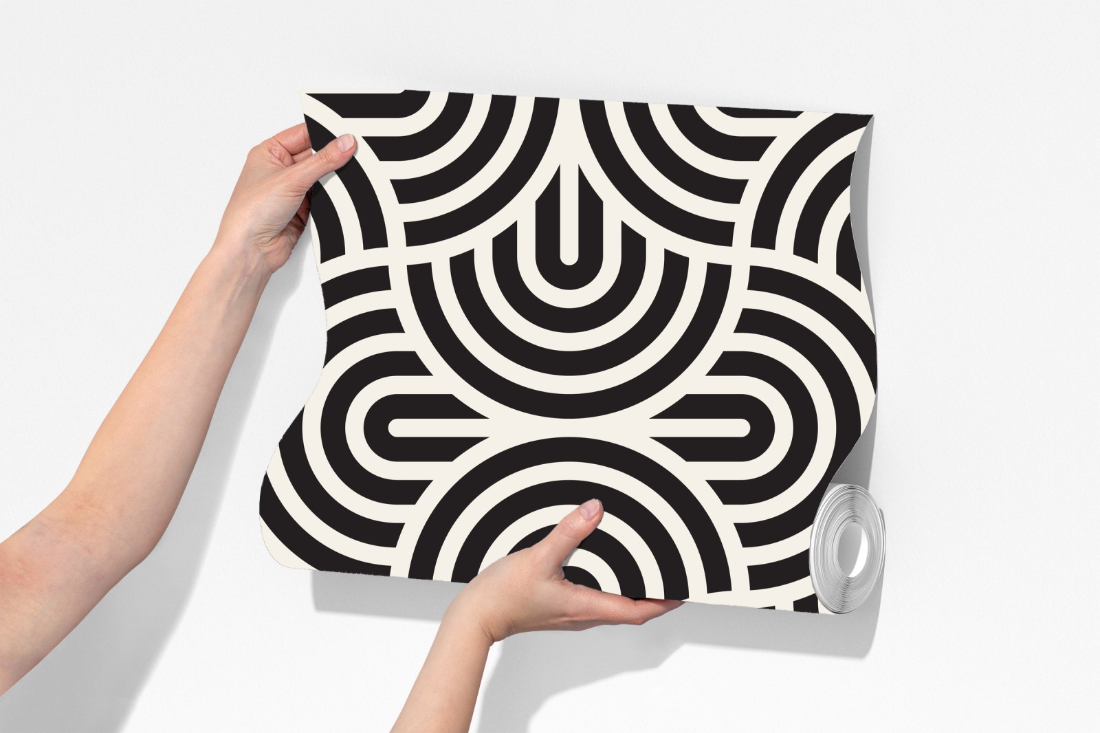 Wyrazisty czarno-biały geometryczny wzór wniesie nowoczesny, optyczny charakter do każdego wnętrza.