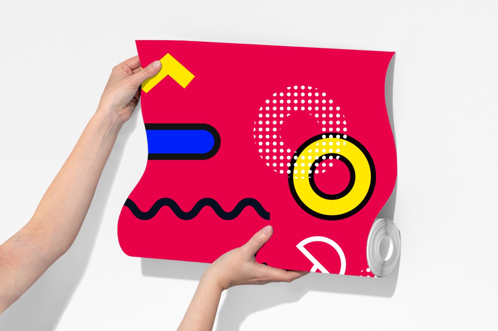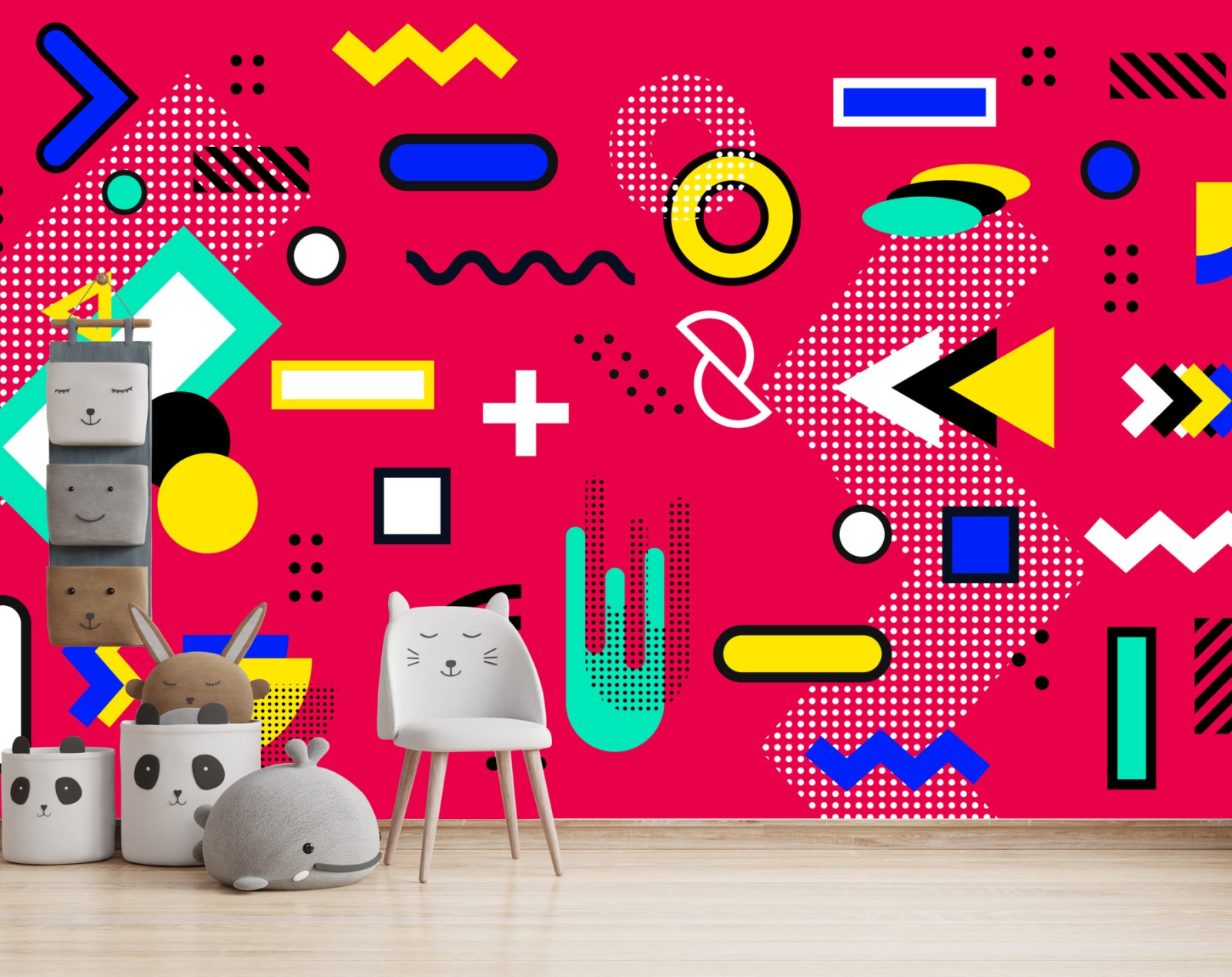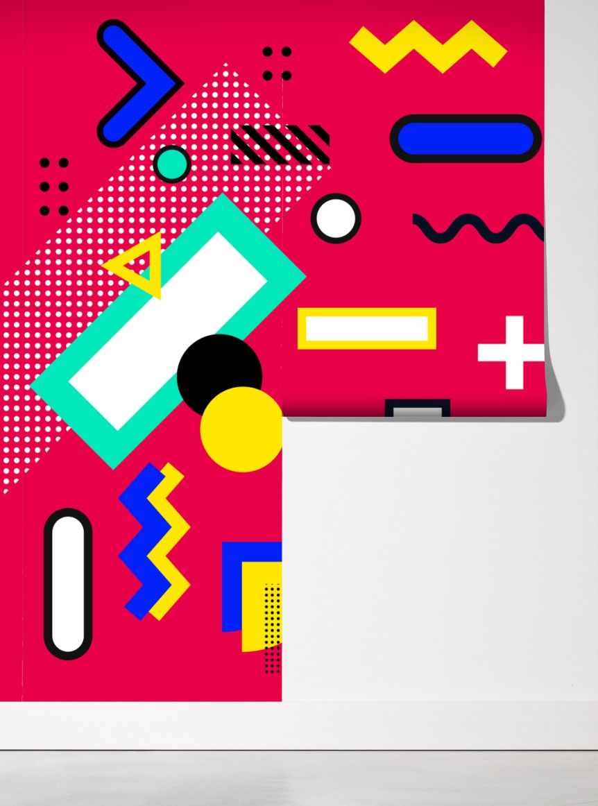 Dodaj śmiałą, kolorową energię geometryczną do każdego wnętrza dzięki temu żywemu, abstrakcyjnemu wzorowi.