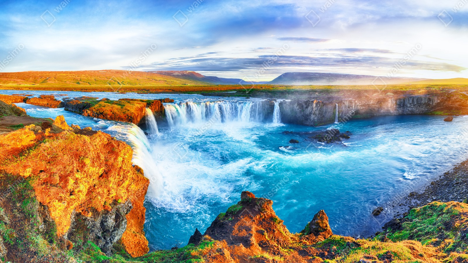 Fototapeta Panorama wodospadu Godafoss o wschodzie słońca
