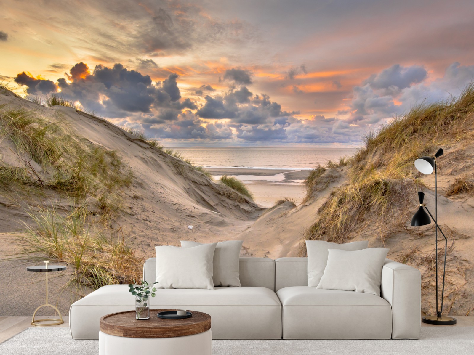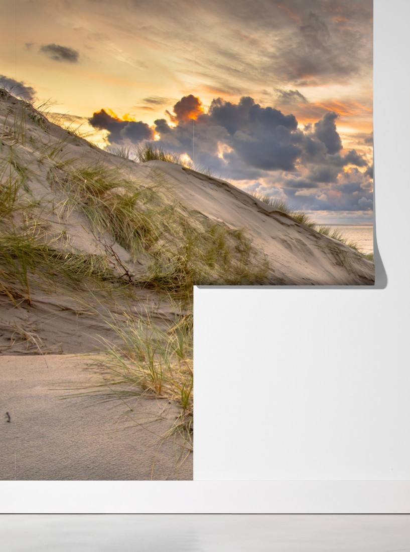 Poczuj spokój nadmorskich wydm podczas ciepłego zachodu słońca, idealne do stworzenia przytulnej atmosfery w domu.