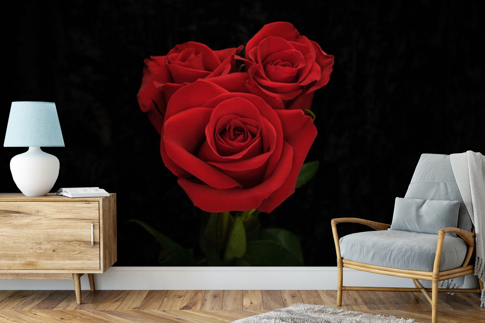 Fototapeta Czerwone róże na czarnym tle