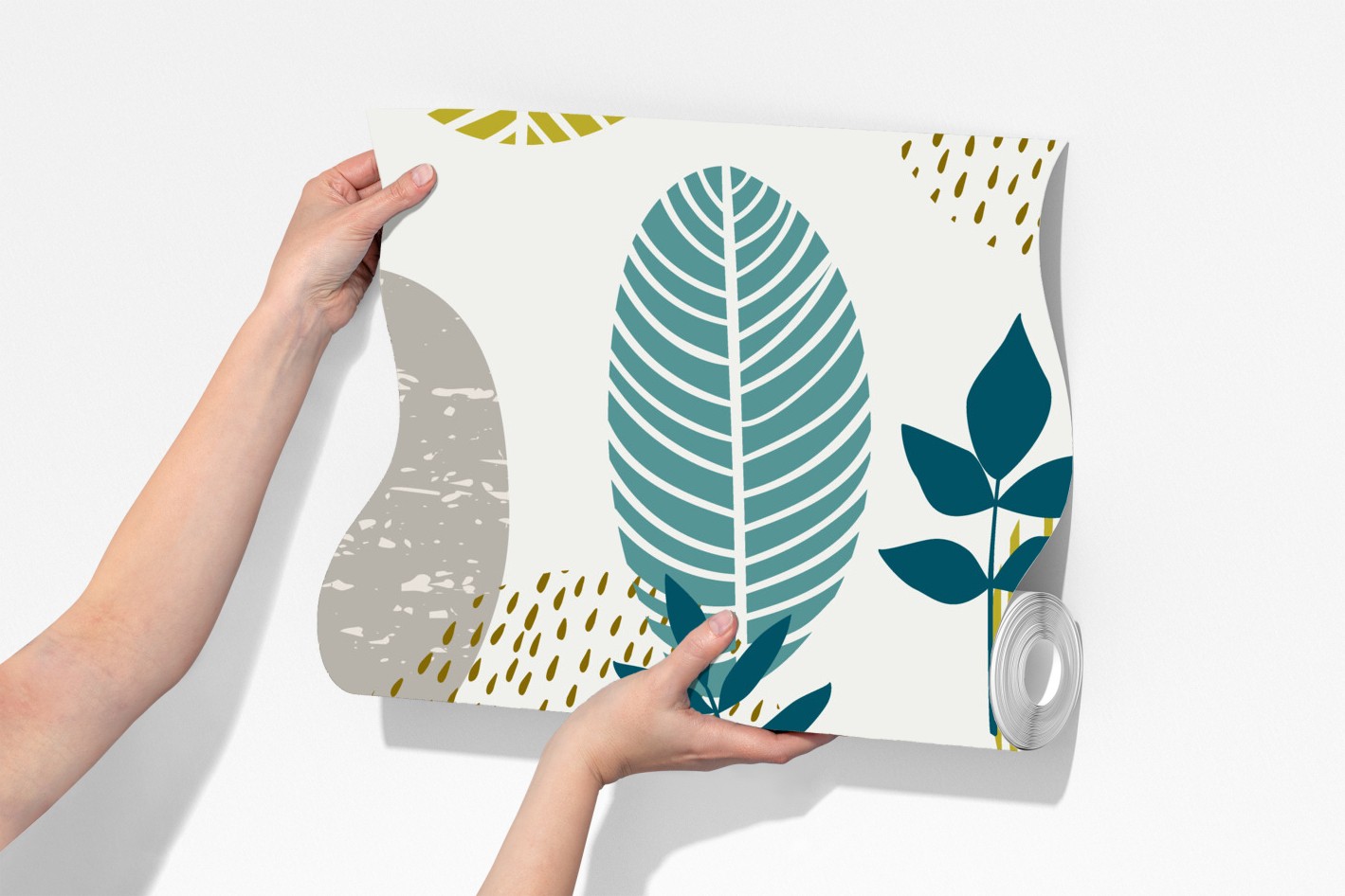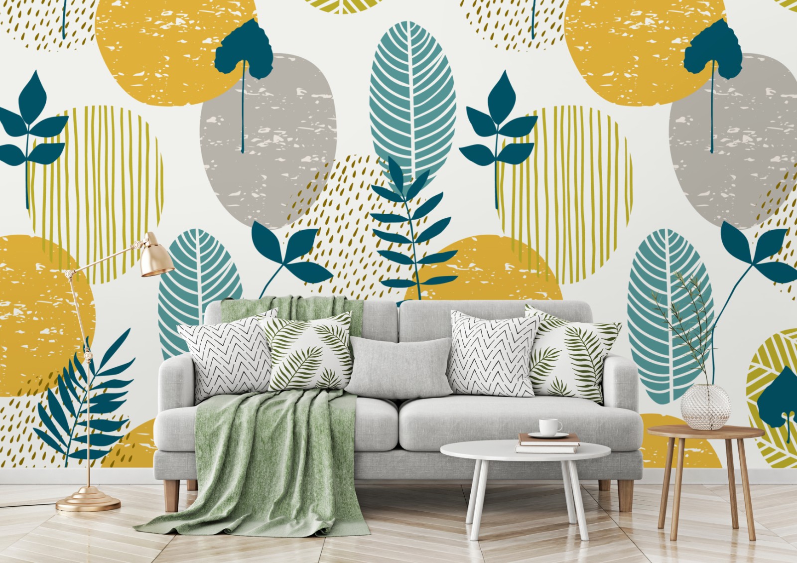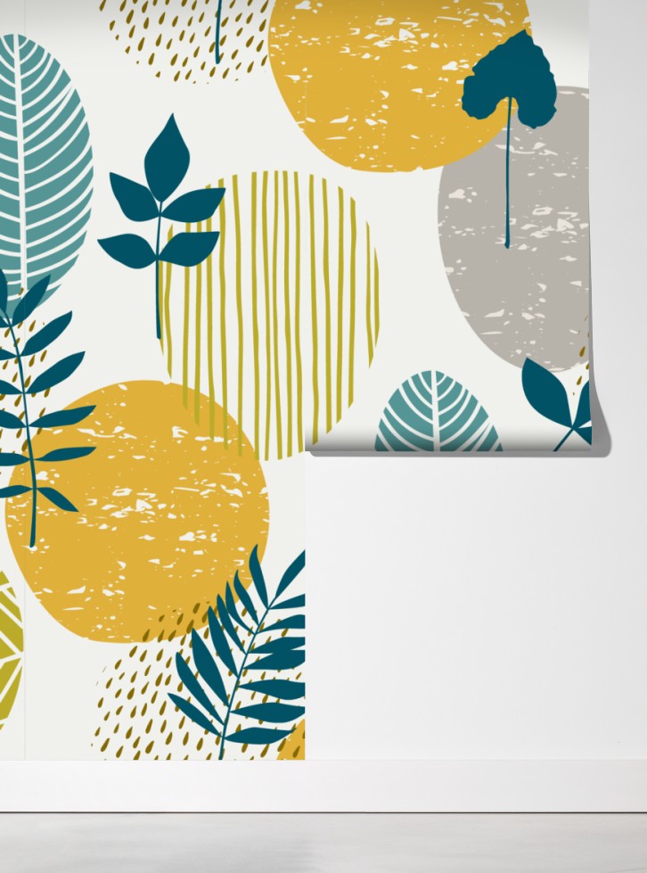 Dodaj nowoczesny botaniczny akcent do wnętrza dzięki temu radosnemu, turkusowo-musztardowemu wzorowi.