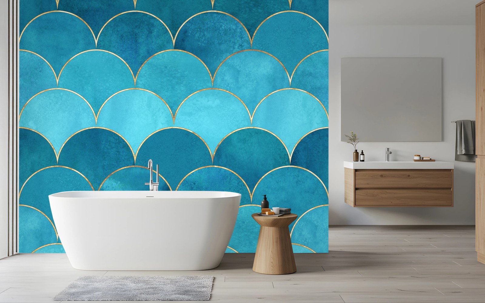 Fototapeta Turkusowy wzór łusek z złotymi detalami