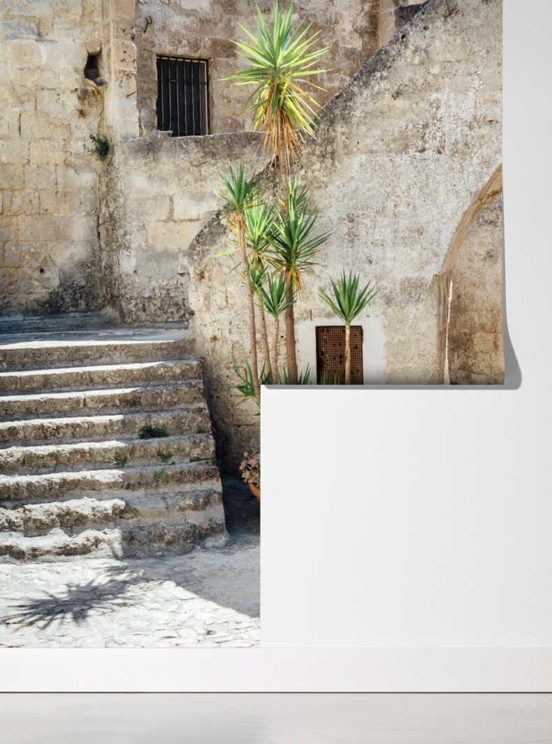 Fototapeta Śródziemnomorski kamienny dziedziniec z łukiem