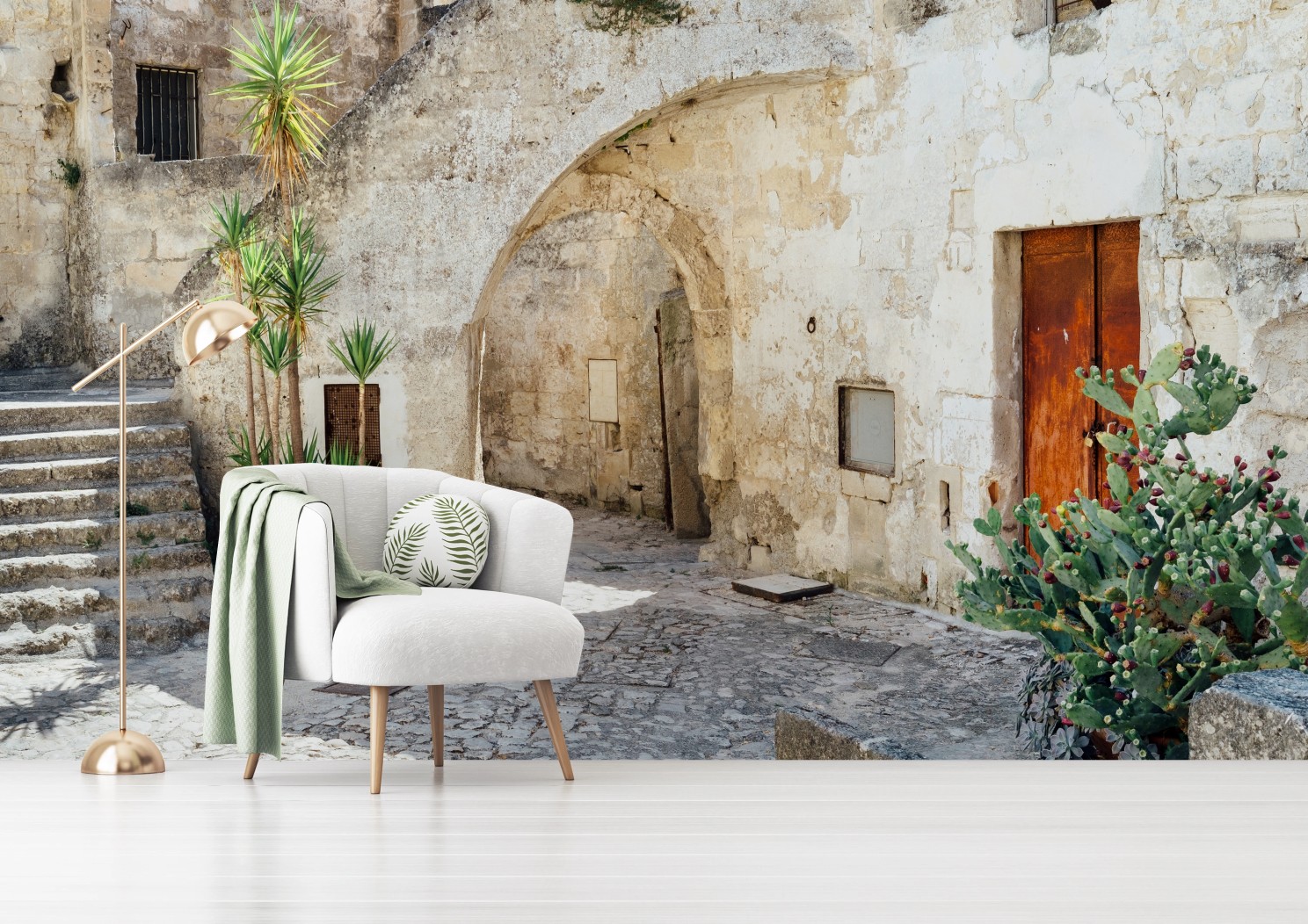 Fototapeta Śródziemnomorski kamienny dziedziniec z łukiem