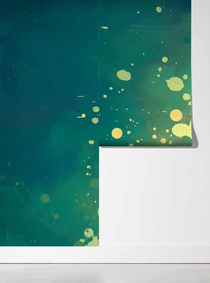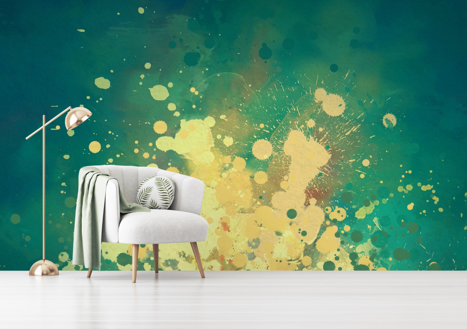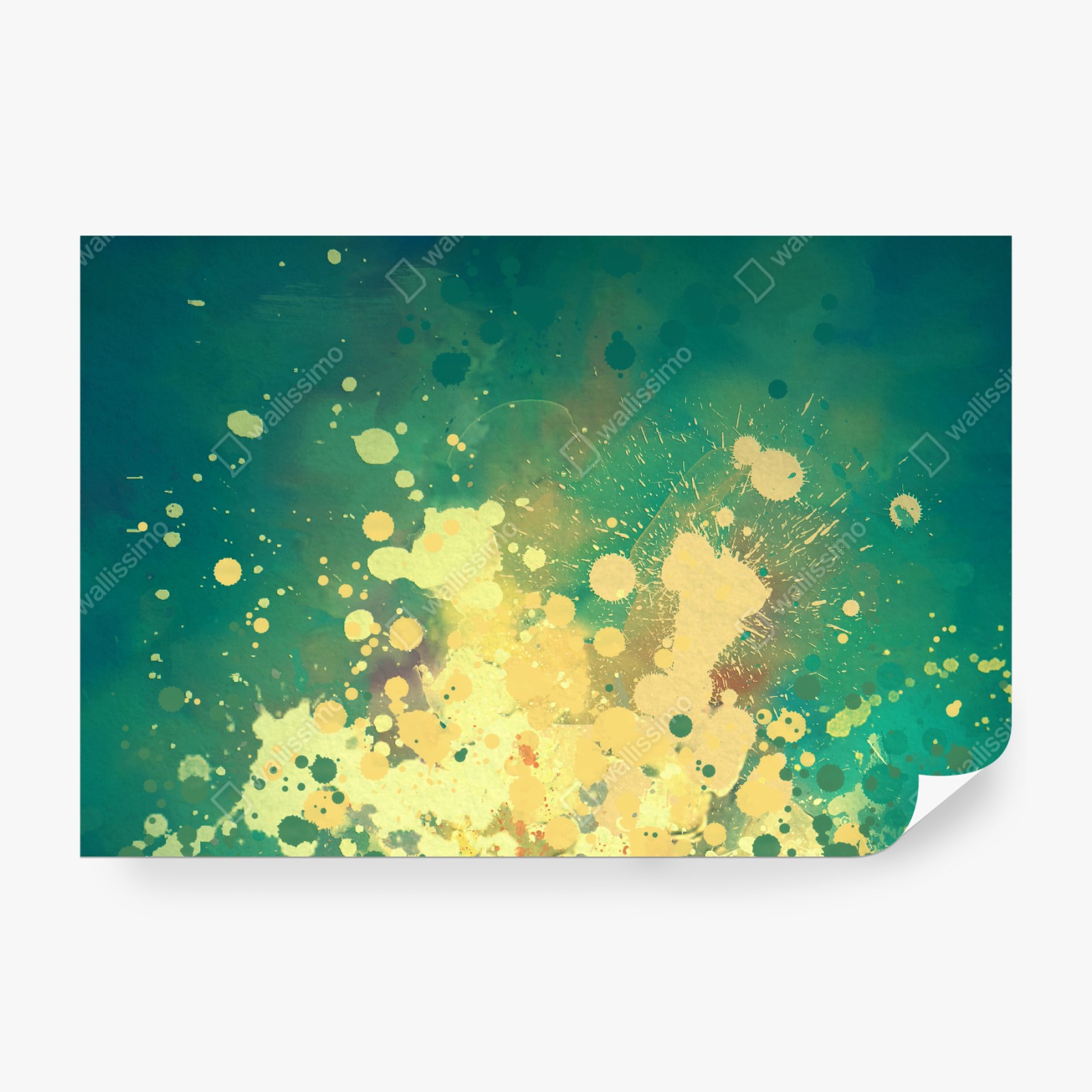 Wprowadź żywą energię do wnętrza dzięki turkusowo-złotej akwarelowej eksplozji, idealnej do nowoczesnych aranżacji.