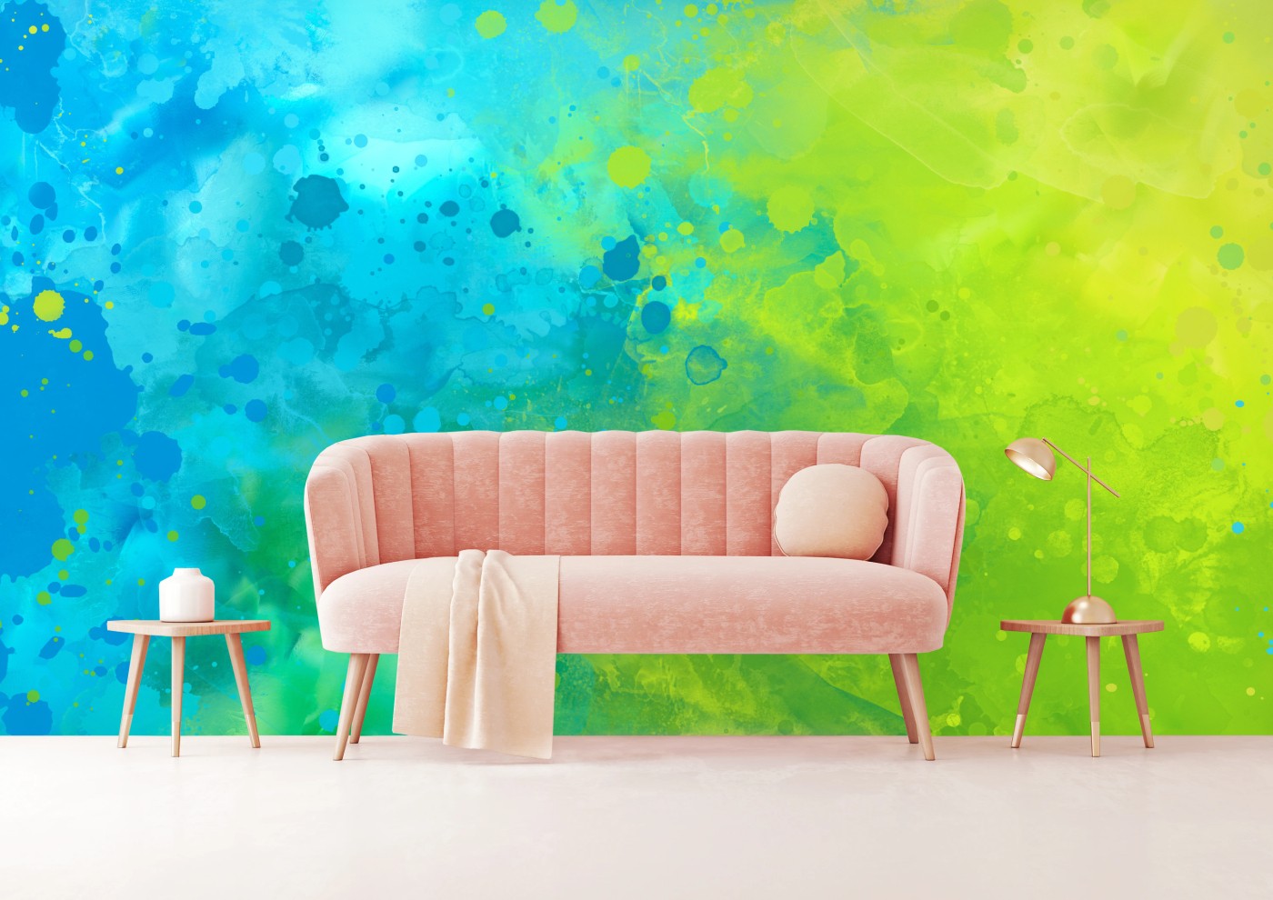 Fototapeta Intensywna turkusowa akwarela z akcentem limonkowym