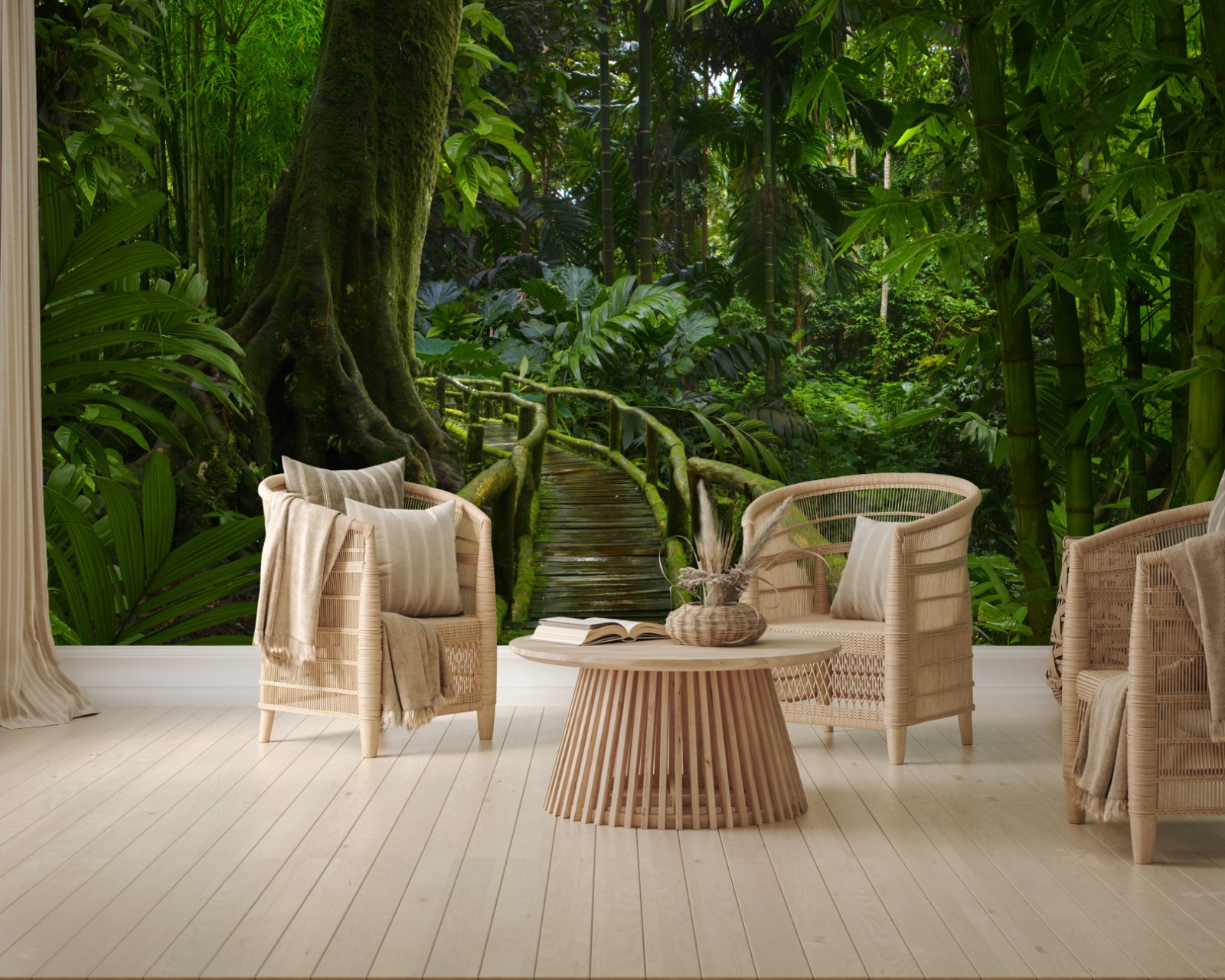 Fototapeta Spokojna kładka w dżungli przez bujny las deszczowy