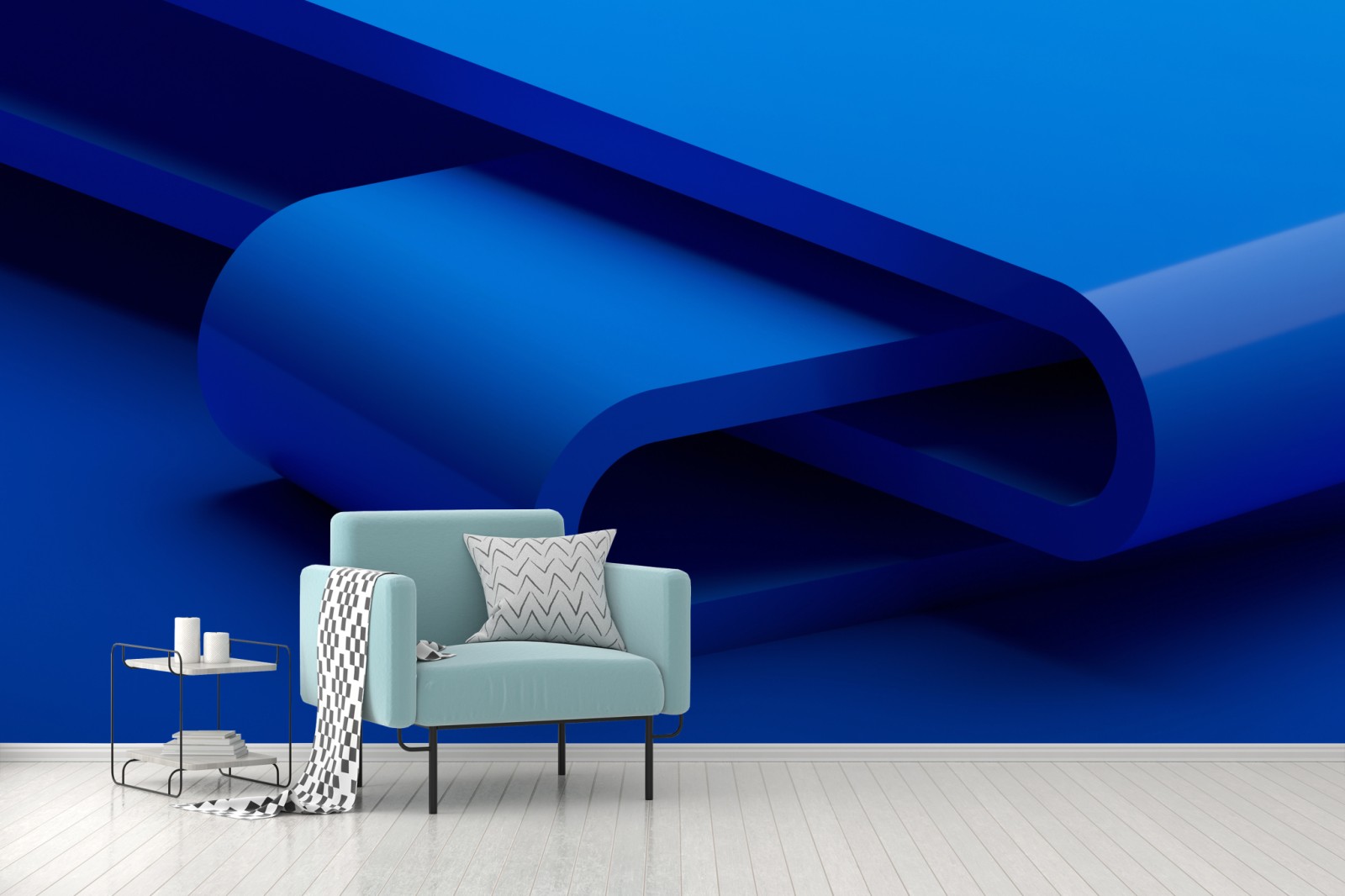 Odśwież swoje wnętrze dzięki wyrazistej, minimalistycznej abstrakcji 3D w odcieniach niebieskiego, która wnosi nowoczesną głębię i spokój.