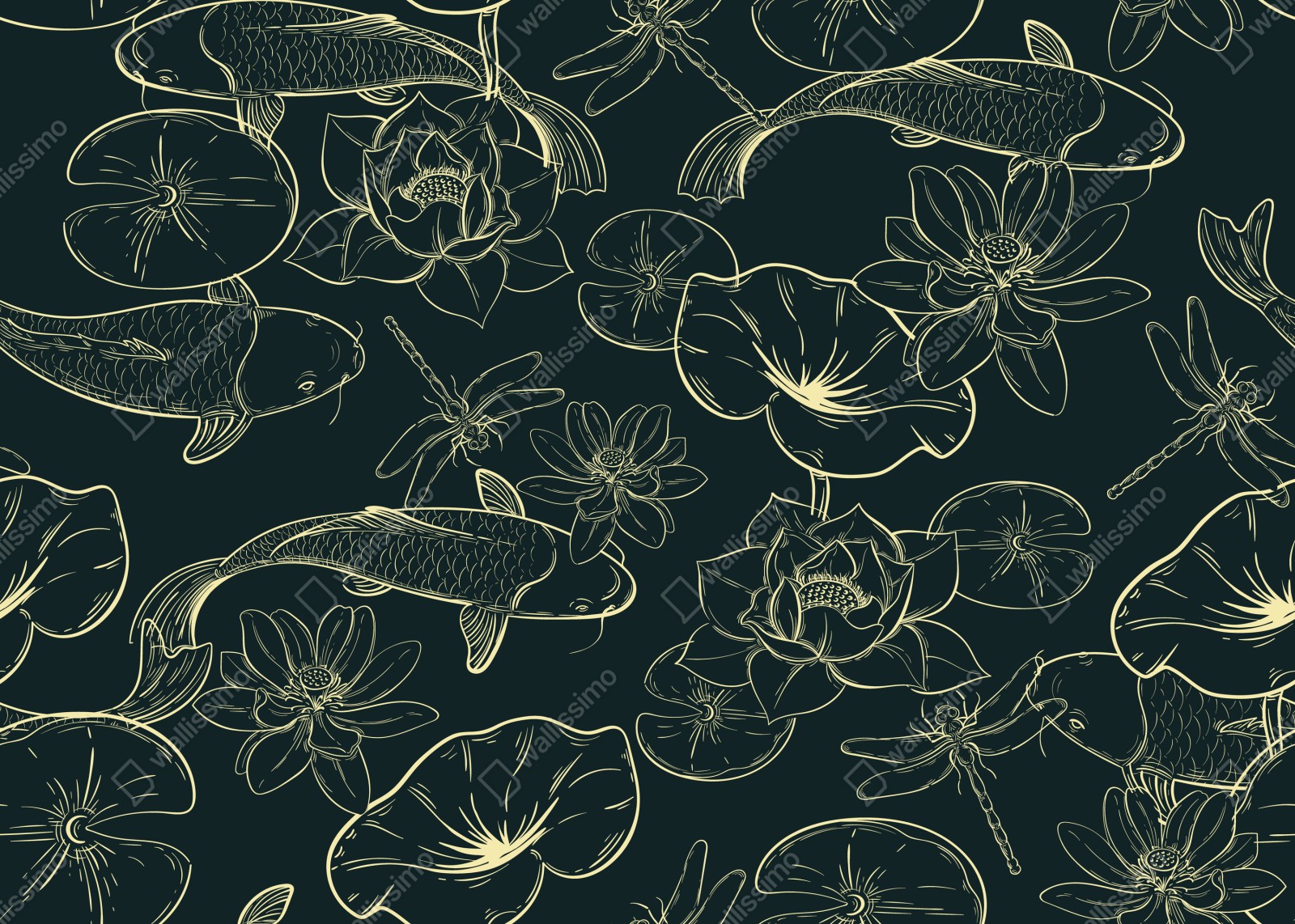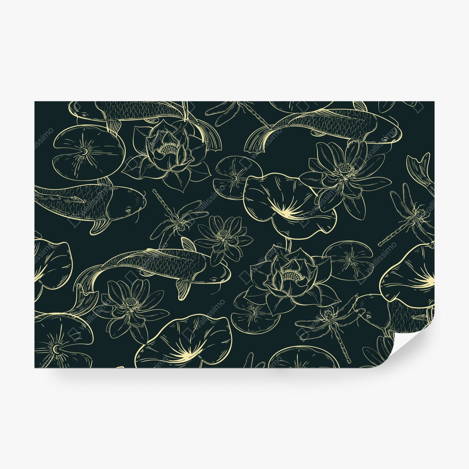 Fototapeta Ręcznie rysowany wzór koi i lotosu