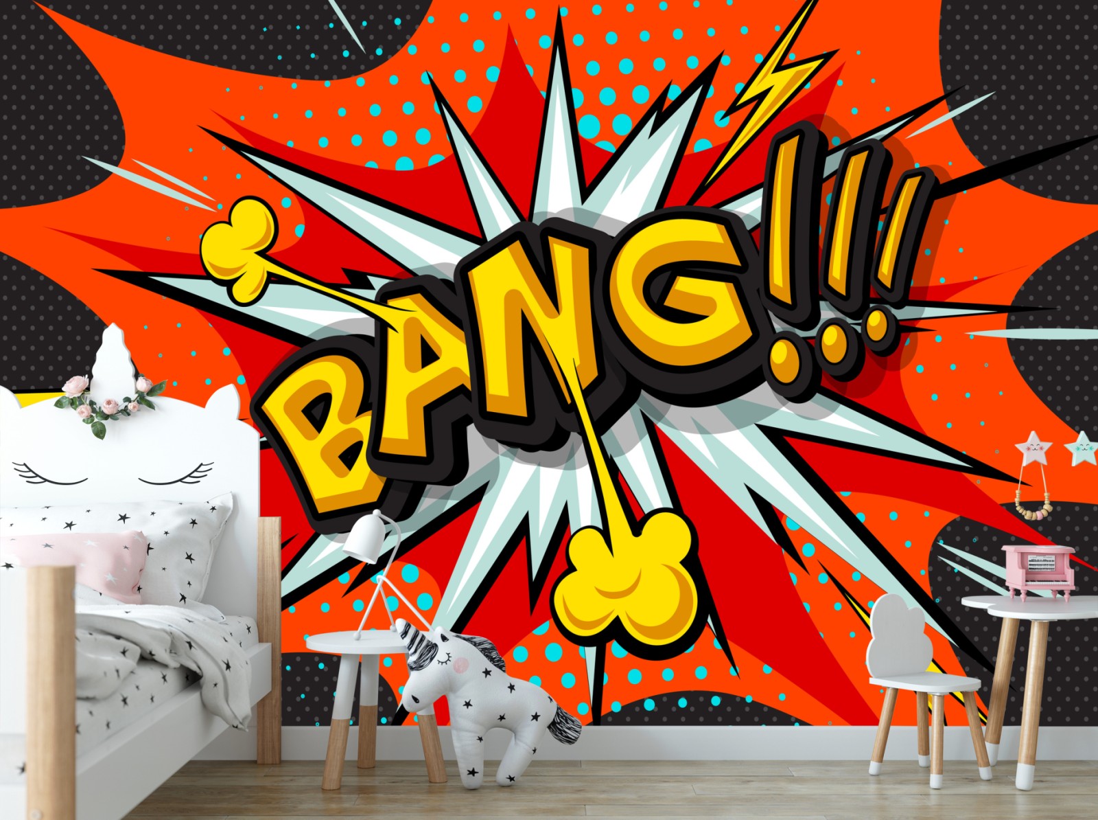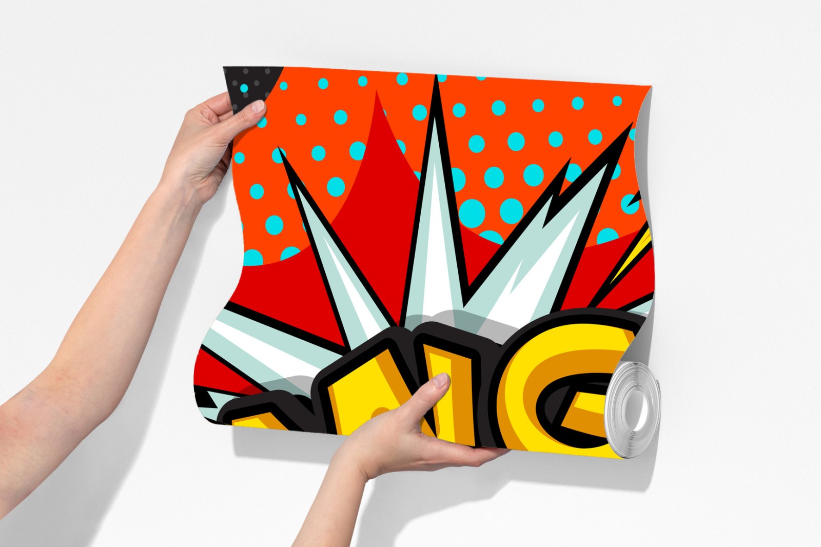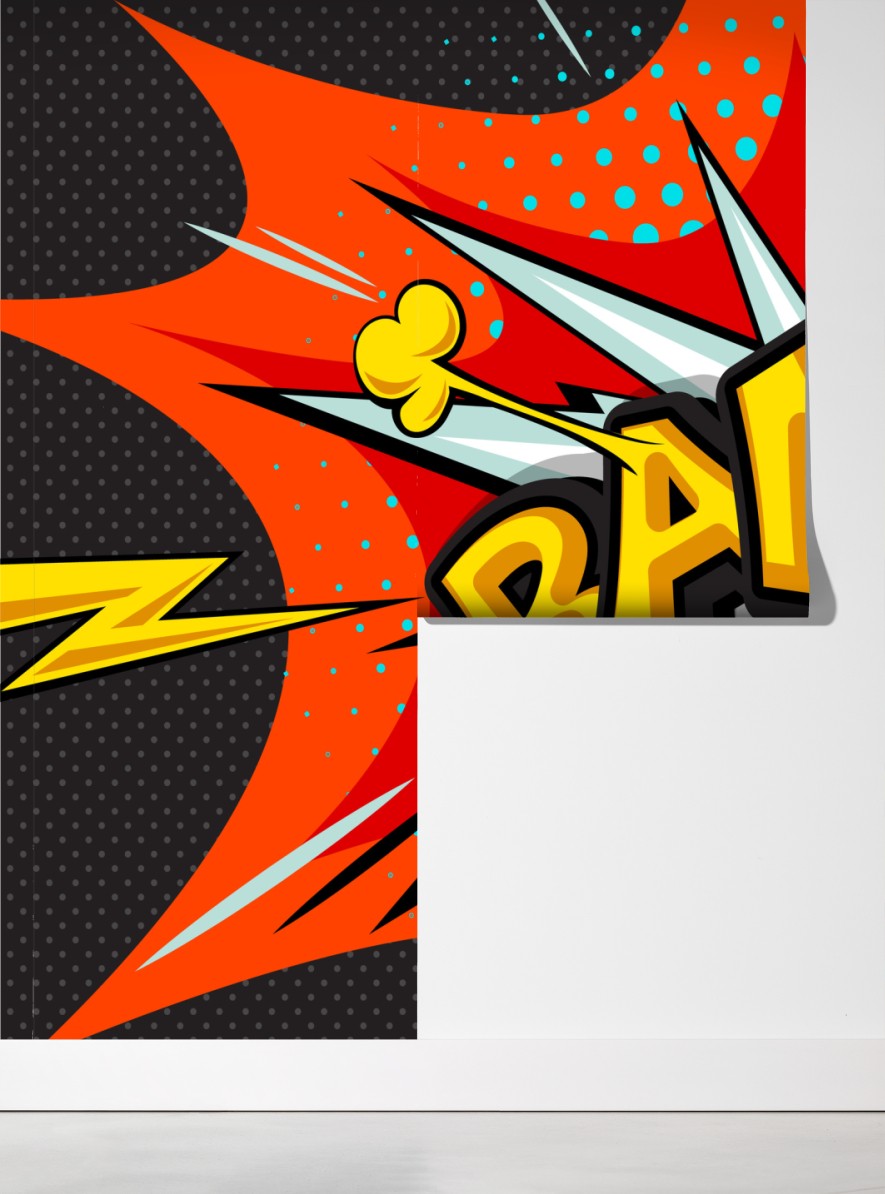 Dodaj śmiałą energię komiksu do wnętrza dzięki tej żywej grafice eksplozji w stylu pop art.