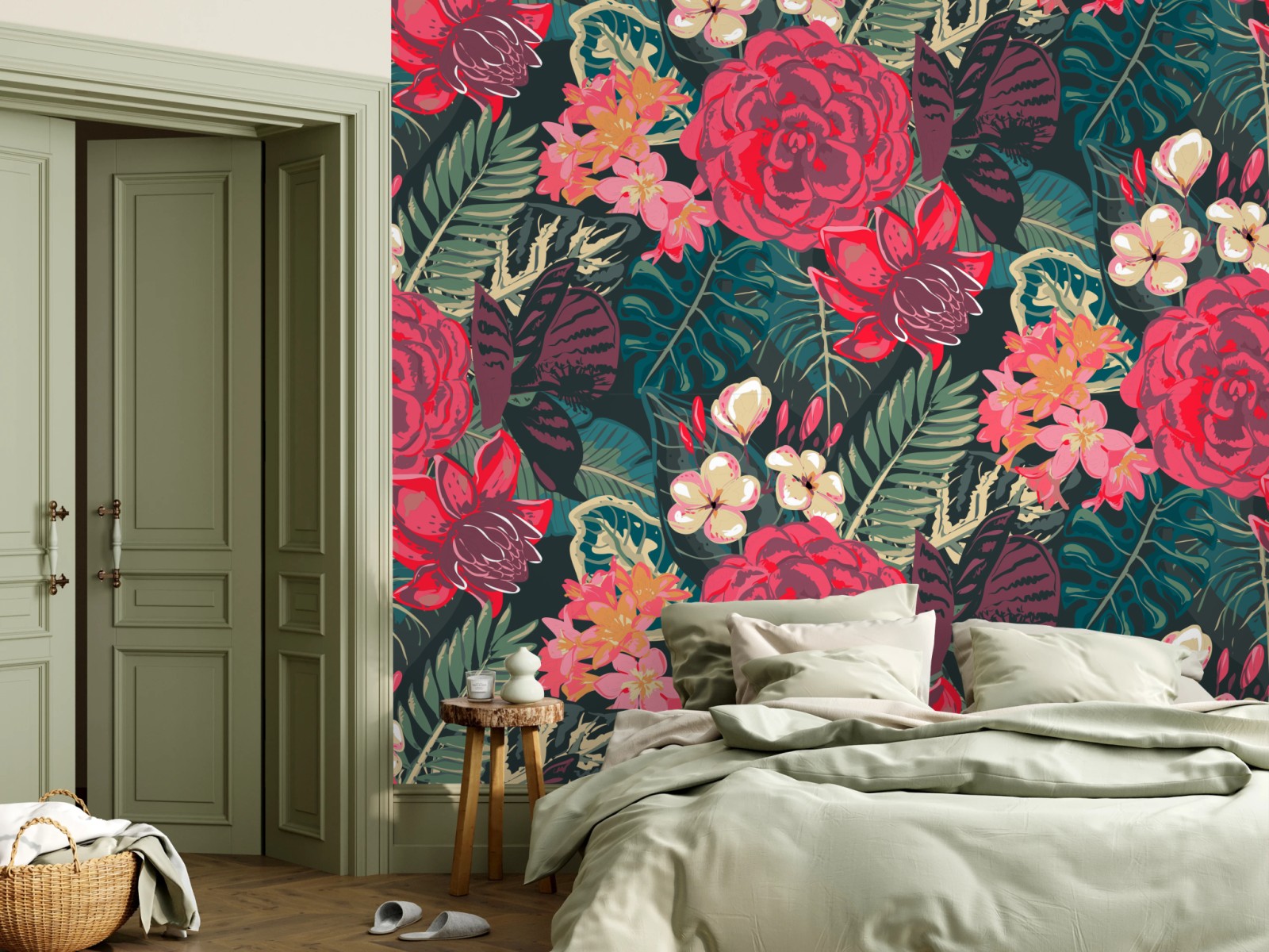 Fototapeta Tropikalny wzór kwiatowy w różu i turkusie