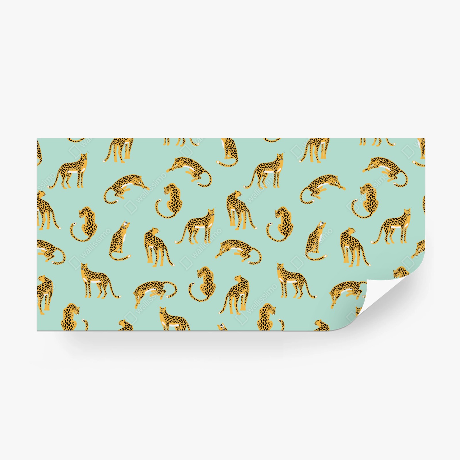 Fototapeta Zabawny wzór gepardów na turkusowym tle