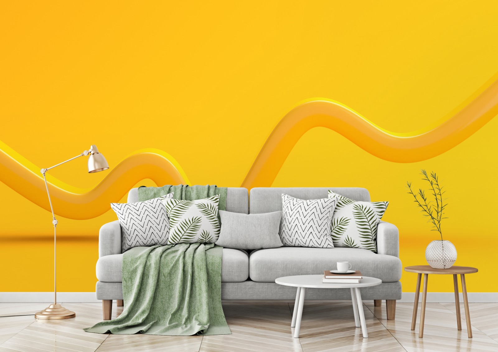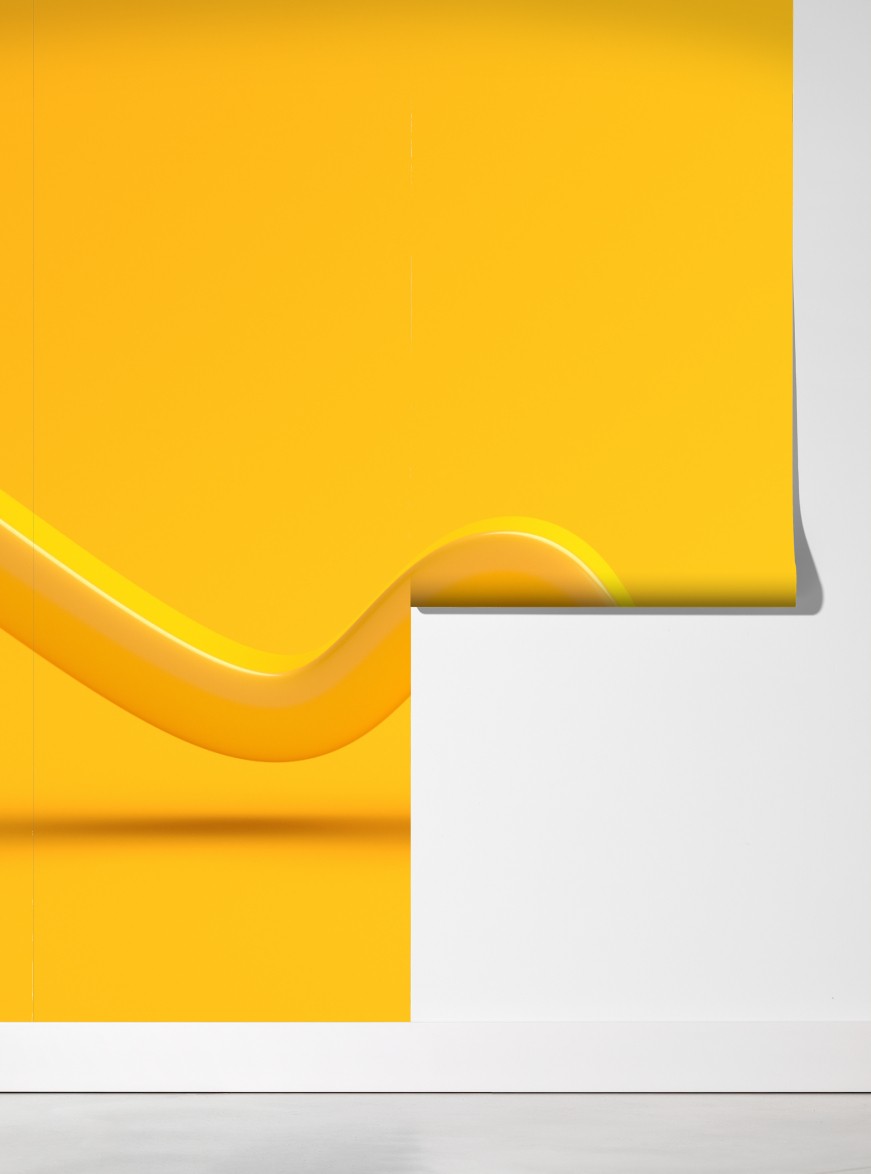 Dodaj energii do wnętrza dzięki tej wyrazistej żółtej abstrakcji 3D, która wprowadza nowoczesny, minimalistyczny akcent.