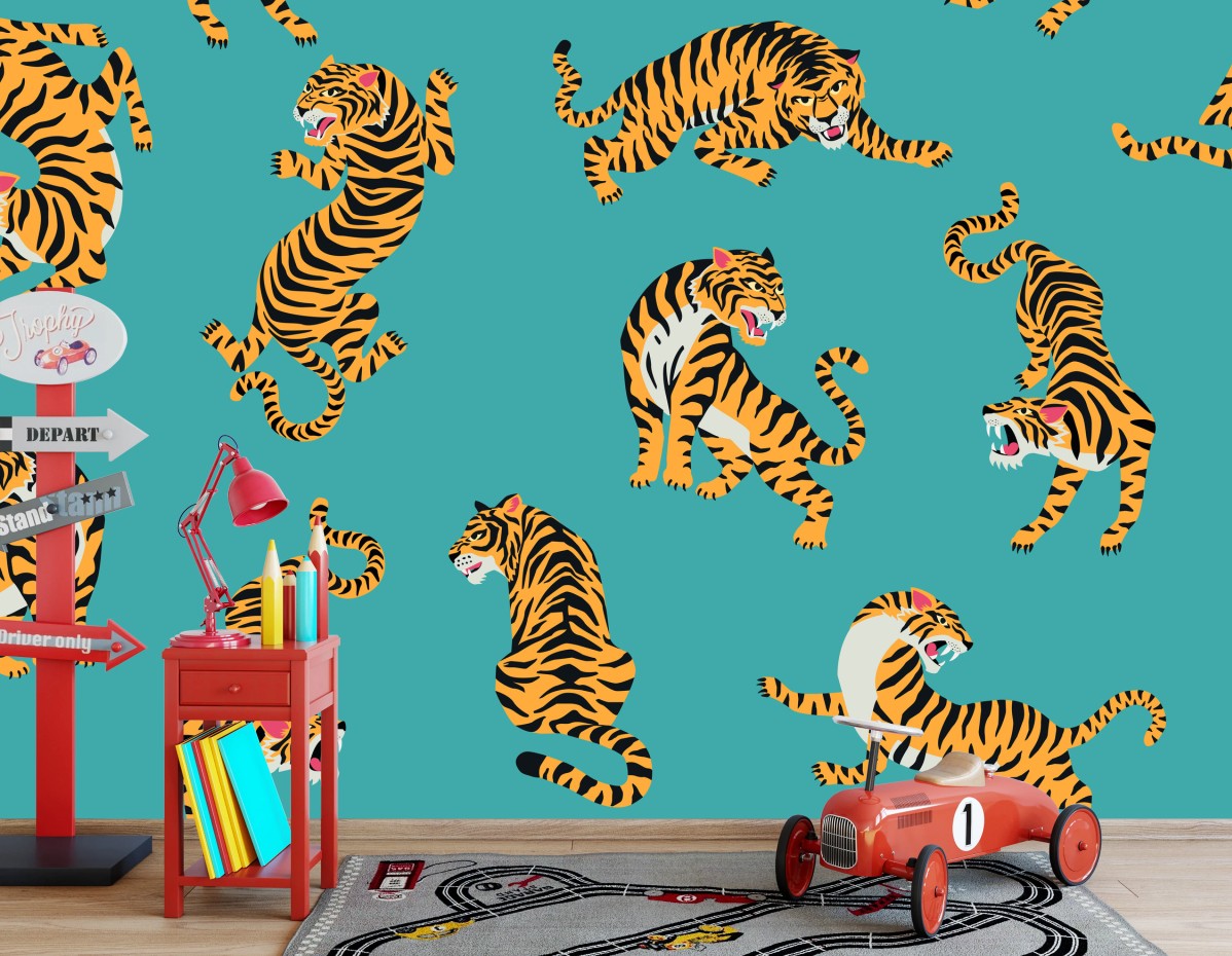 Fototapeta Stylizowany motyw tygrysa na turkusowym tle