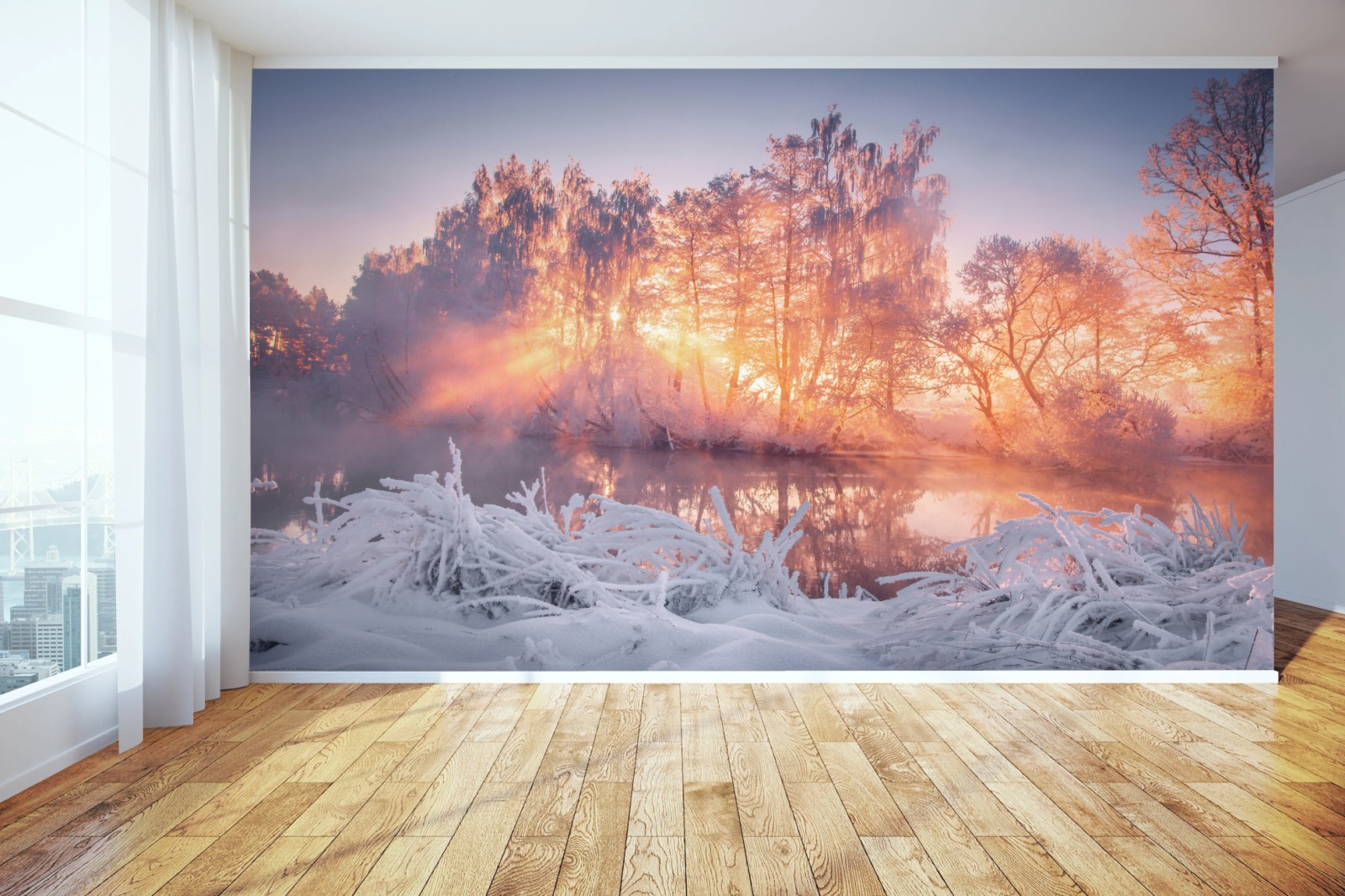 Fototapeta Zimowy wschód słońca nad zamarzniętą rzeką