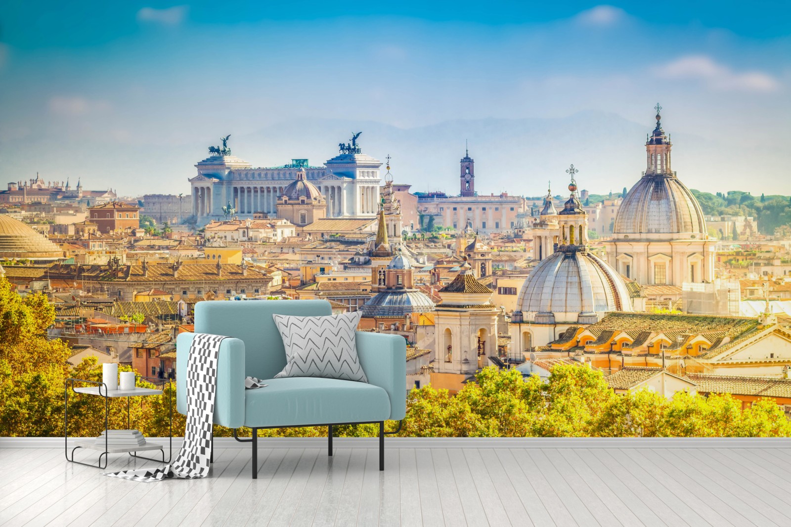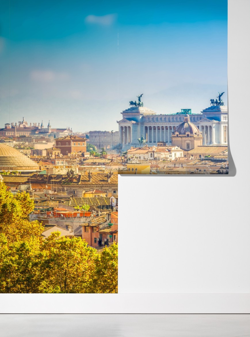 Dodaj ciepła i historycznego charakteru do wnętrza dzięki słonecznemu widokowi na panoramę Rzymu.