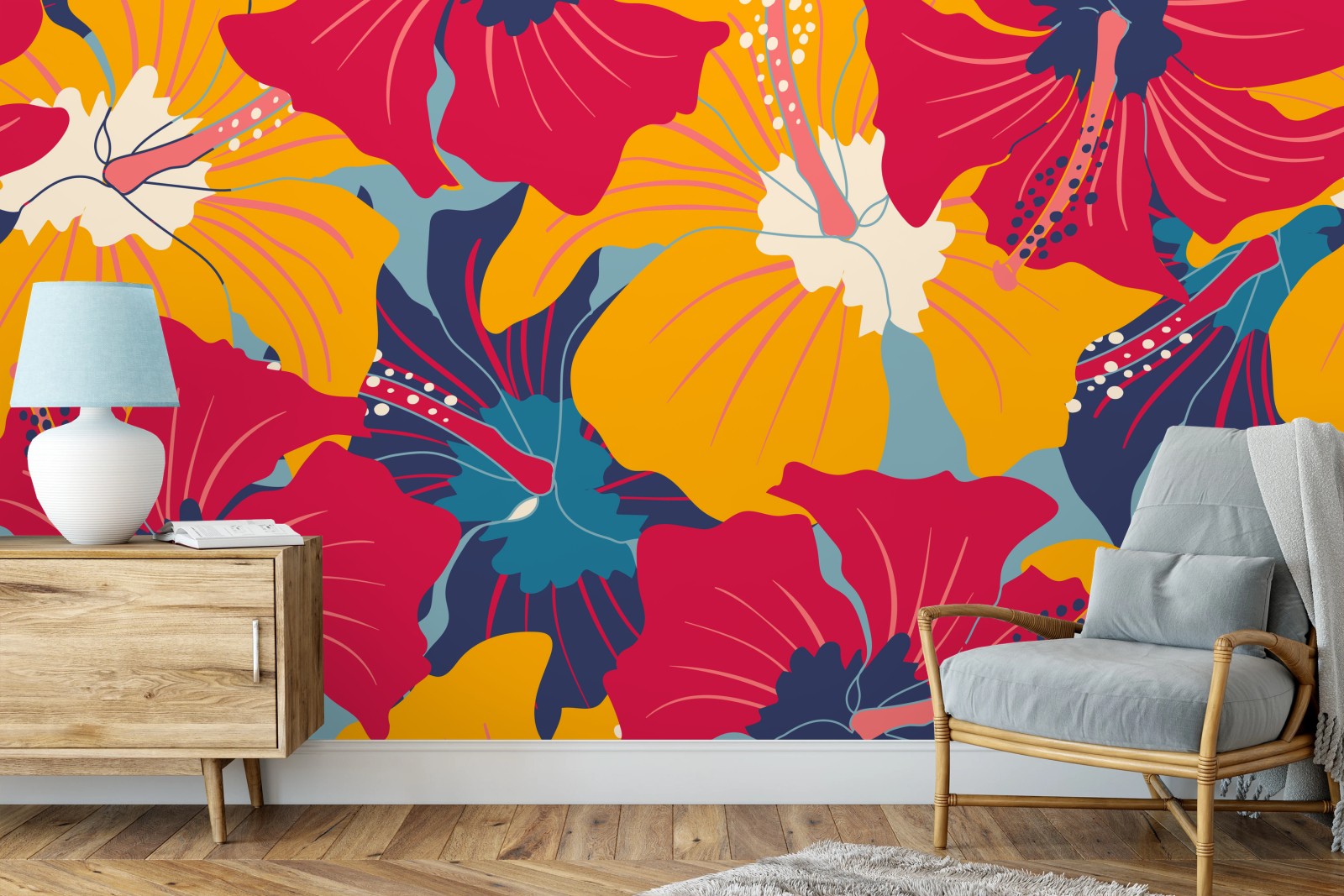 Fototapeta Żywy wzór hibiskusa w stylu retro