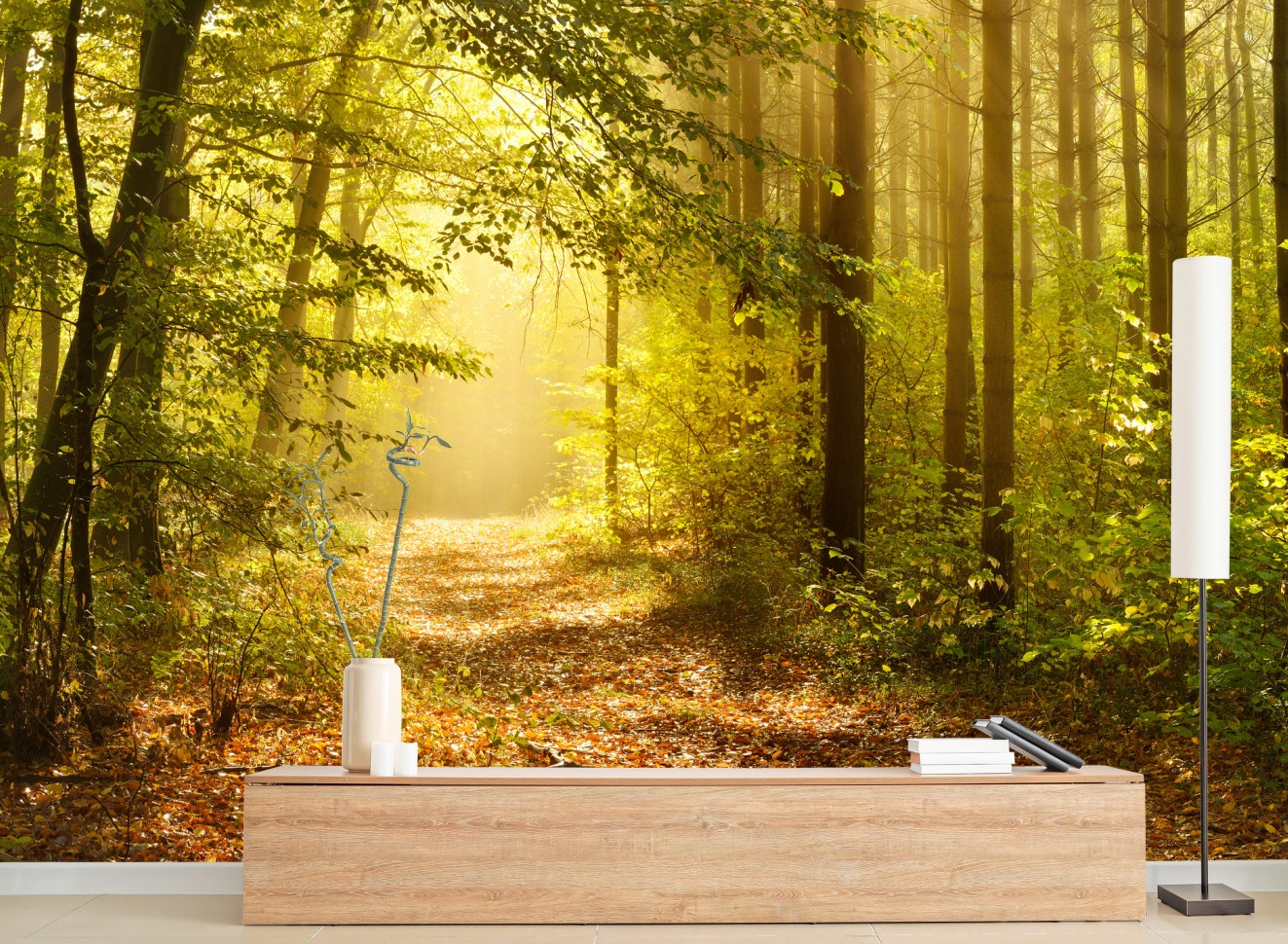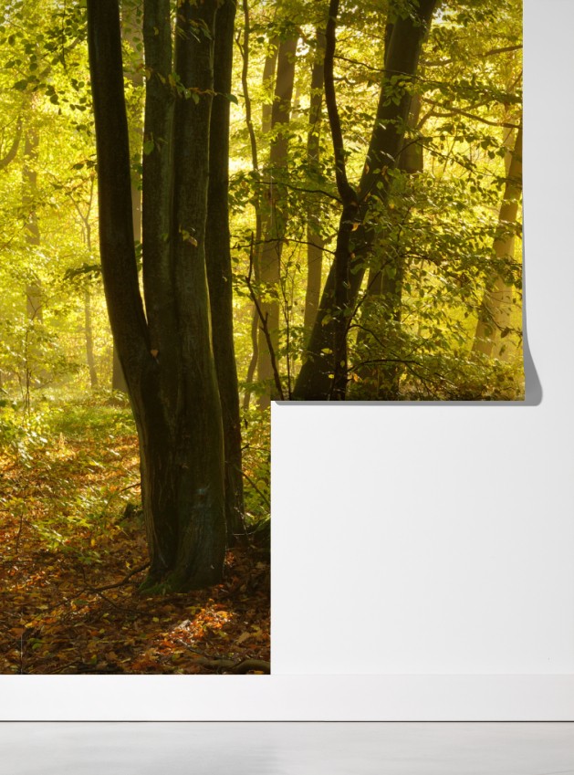 Przenieś uspokajające piękno słonecznego lasu jesienią do swojego wnętrza, dodając ciepła i głębi każdemu pomieszczeniu.
